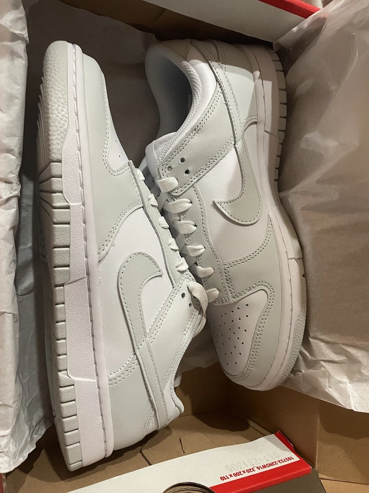 Elevate your casual lifestyle with these Nike Wmns Dunk Low Photon sneakers. The shoes are designed with a faux leather upper material and a medium (b, M) shoe width. They come in a stylish white color and feature a 100% authentic guarantee. These athletic sneakers are perfect for women who enjoy a comfortable yet fashionable shoe. They are available in US shoe sizes 8.5, 5-12, and 7-14 for domestic customers. The shoes are made in Indonesia and belong to the Wmns Dunk Low product line. Get your hands on these sneakers and step out in style!