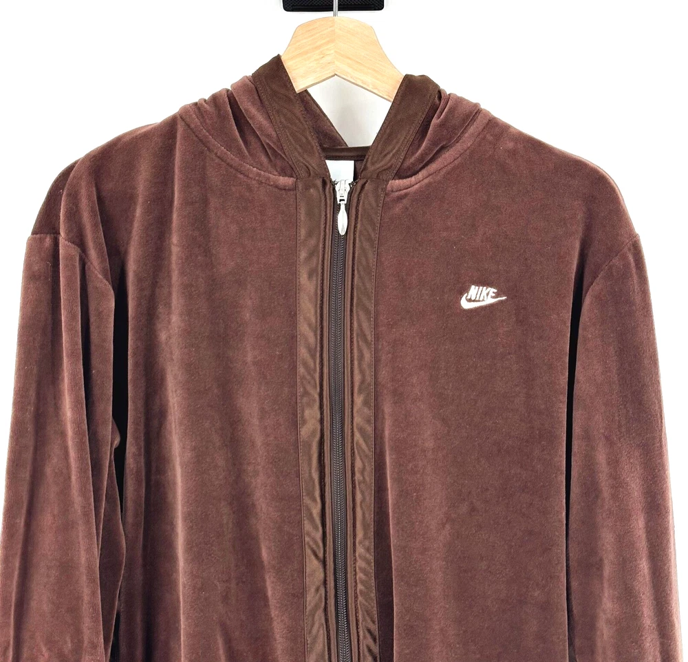 Nike Women Y2K Velour Zip Up Hoodie Size XL Swoosh Brown Retro Streetwear Sporty Color: Brown Specific: full zip, hooded, cozy and soft, Y2k, retro Material: Cotton/Polyester Condition: In Great Preowned Condition With No Flaws Measurments Laying Flat In Inches Pit to Pit 22 inches Length From Shoulder To Hemline 22 inches Ships next business day 1671-10