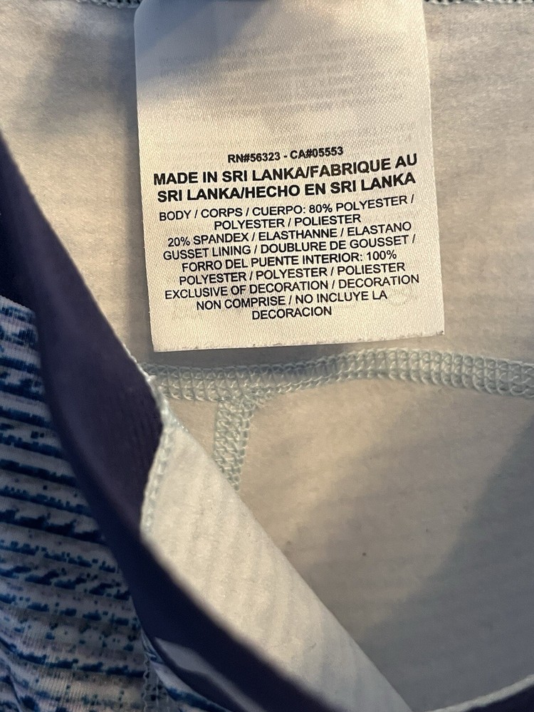These leggings are super comfy and fit perfectly! The Dri-Fit material keeps me cool during workouts, and the blue and white pattern is stylish. They’re in great condition—barely look used. Love them!
