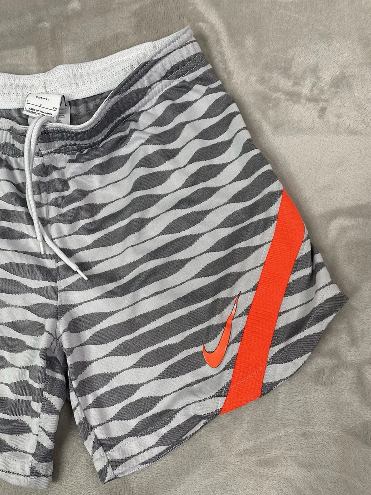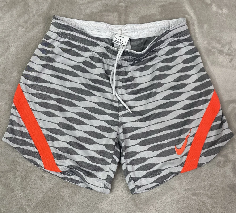 Nike check has some minor wear. Crafted for the soccer enthusiast, the Nike Women's Dri-Fit Strike Soccer Shorts are designed to offer both comfort and mobility. The size small shorts come in a versatile grey, making them a staple for any activewear wardrobe. Lined with Nike's innovative technology, they provide additional coverage and support during high-intensity activities. The shorts feature a convenient drawstring closure for a secure fit and are tailored to fit a regular size type. With a focus on performance, they are ideal for soccer and other athletic pursuits. The dri-fit fabric helps keep you dry and comfortable, while the athletic style ensures you move with ease on and off the field.