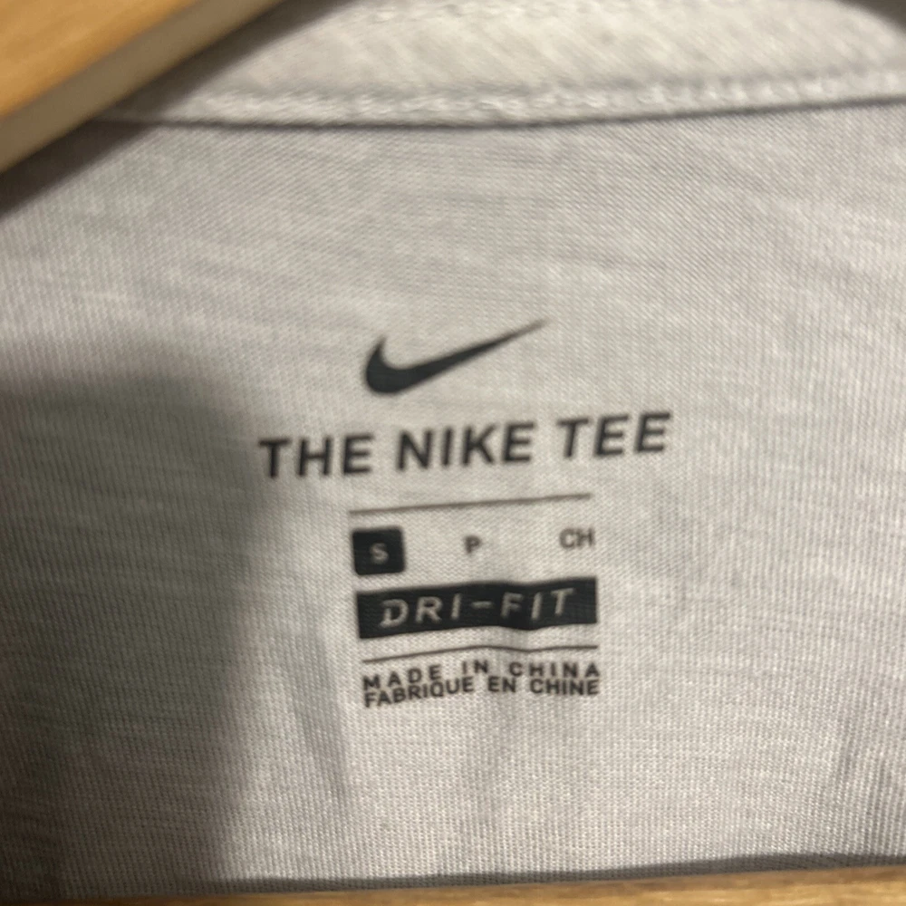 This Nike Women's T-Shirt is perfect for any active occasion. The Dri-Fit technology ensures you stay comfortable and dry, while the gray color with logo on sleeves adds a touch of style. Available in size S, this regular fit shirt is ideal for activewear. The shirt is part of the Clothing, Shoes & Accessories, Women, Women's Clothing, Activewear, and Activewear Tops categories. Add it to your wardrobe and enjoy the quality and comfort of Nike.