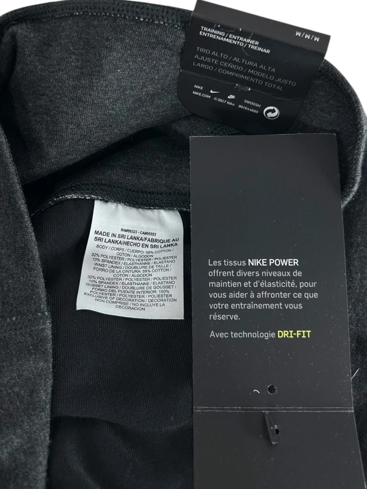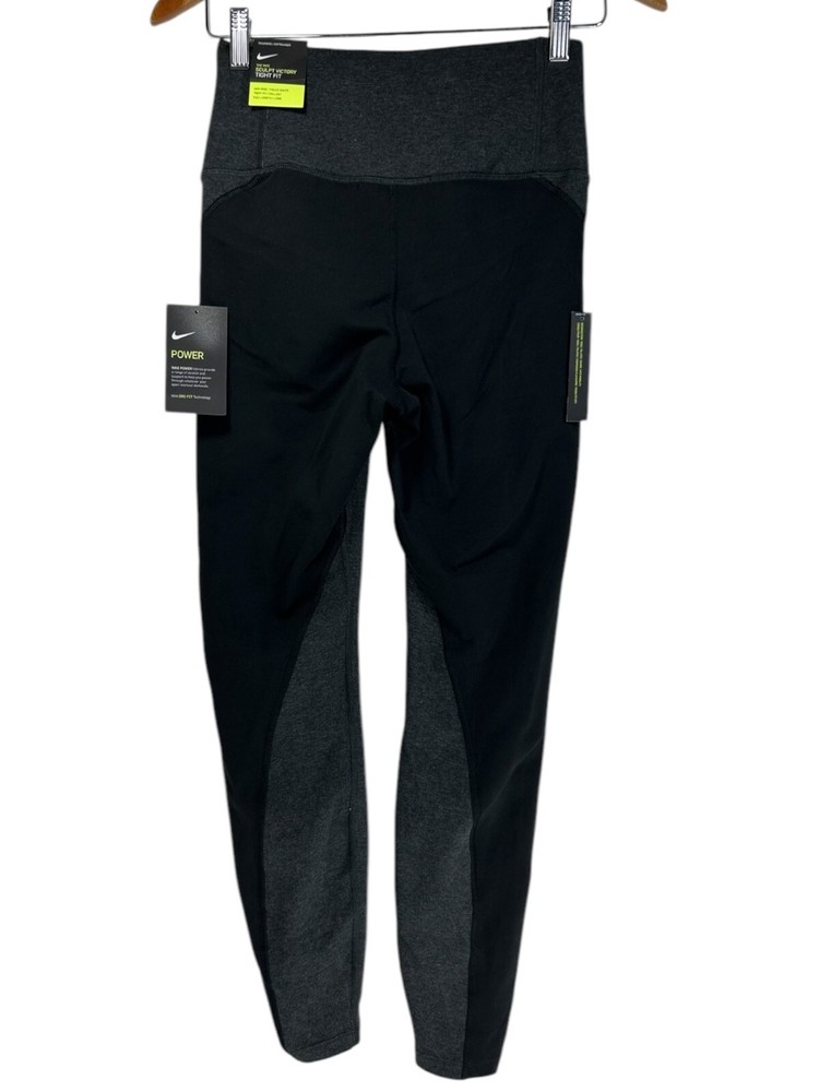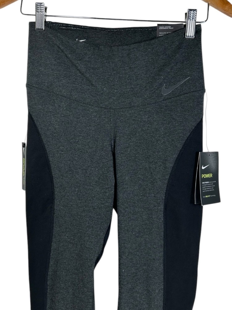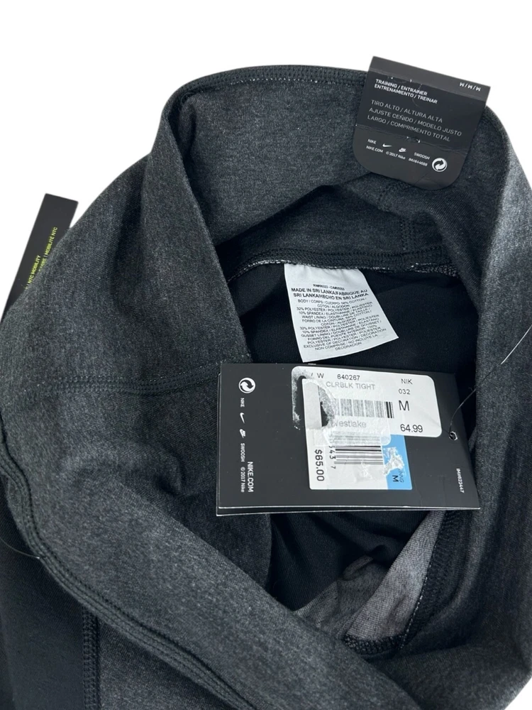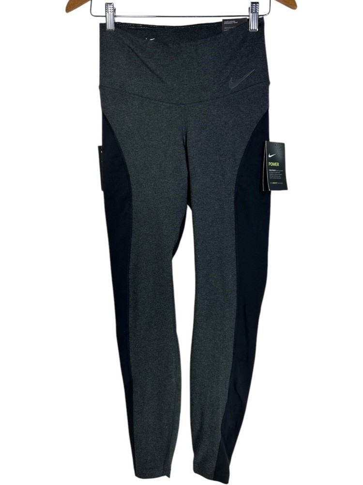 Style: Compression MPN: none Season: Fall, Spring, Summer, Winter Material: Cotton, Cotton Blend, Polyester, Polyester Blend, Spandex Inseam: 26 in Size: M gtin13: Does Not Apply Character: none Color: Black/grey Closure: Pull On Handmade: No Brand: Nike Performance/Activity: Bodybuilding, Cross Training, Cycling, Gym & Training, Pilates, Running & Jogging, Track & Field, Typing, Walking, Weightlifting, Yoga Fabric Type: Blended Fabric Pattern: Colorblock Size Type: Regular Theme: Athleisure, Logo, Sports, athleticwear, athletic, active, activewear, gym, workout, training, fit, fitness Occasion: Activewear Country/Region of Manufacture: Vietnam UPC: Does Not Apply Compression Area: Leg Product Line: Nike Dri-FIT Fit: Athletic Features: Anti-Cellulite, Anti-Microbial & Anti-Odor, Comfort, Easy Care, Elastic Waist, Lightweight, Media Pocket, Moisture Wicking, Quick Dry, Shaping, Slimming, Stretch, Wrinkle Resistant Leg Style: Skinny Personalization Instructions: none Personalize: No Type: Leggings Garment Care: Machine Washable Waist Size: 25 in Department: Women