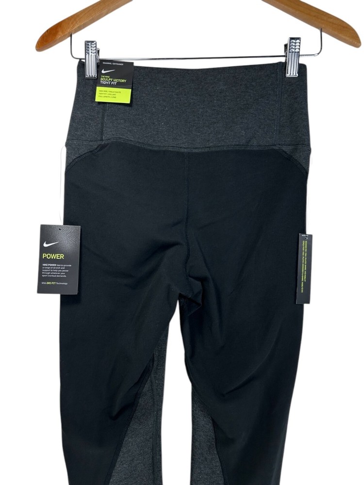 NWT Nike Sculpt Victory Tight Fit High Rise Colorblock Leggings in Black/grey combo High rise/high waisted Fitted all throughout Stretchy and moisture wicking Colorblock design Nike logo on left front hip Full length fit Triblend cotton fabrication Made with polyester/spandex/cotton Made in Sri Lanka Women’s medium Waist: 12.5” across Inseam: 26” Rise length: 13” Full length: 39” #nike #nikeleggings #colorblock #colorblockleggings #nikewomens #athleticleggings #womensnike #nikelegging #colorblock #athleticwear #activewear