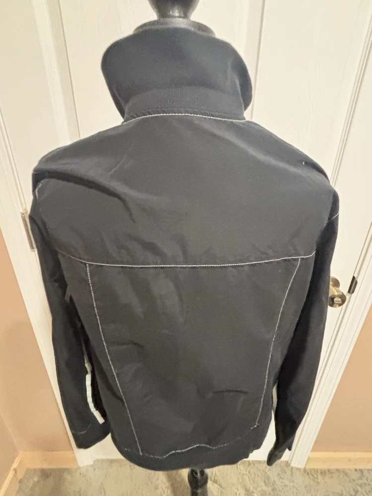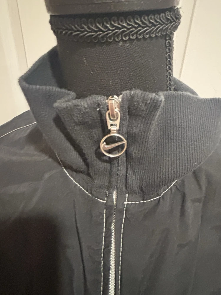 This Nike Women's Vintage Y2K Black Zipper Logo Jacket is a must-have for any activewear collection. The jacket is made of high-quality polyester material and features a full zip closure, long sleeves, and a mid-length jacket/coat length. The black and white color combination, along with the Nike swoosh character, creates a stylish and classic look that can be worn during any season. The jacket is machine washable and has been well-maintained, ensuring its quality and durability. It is perfect for walking, running, and jogging, making it an ideal choice for those who enjoy outdoor activities. The jacket's features include a solid pattern, polyester lining material, and insulation material, making it both comfortable and functional. The jacket is a size L and fits regular, making it a versatile addition to any wardrobe.