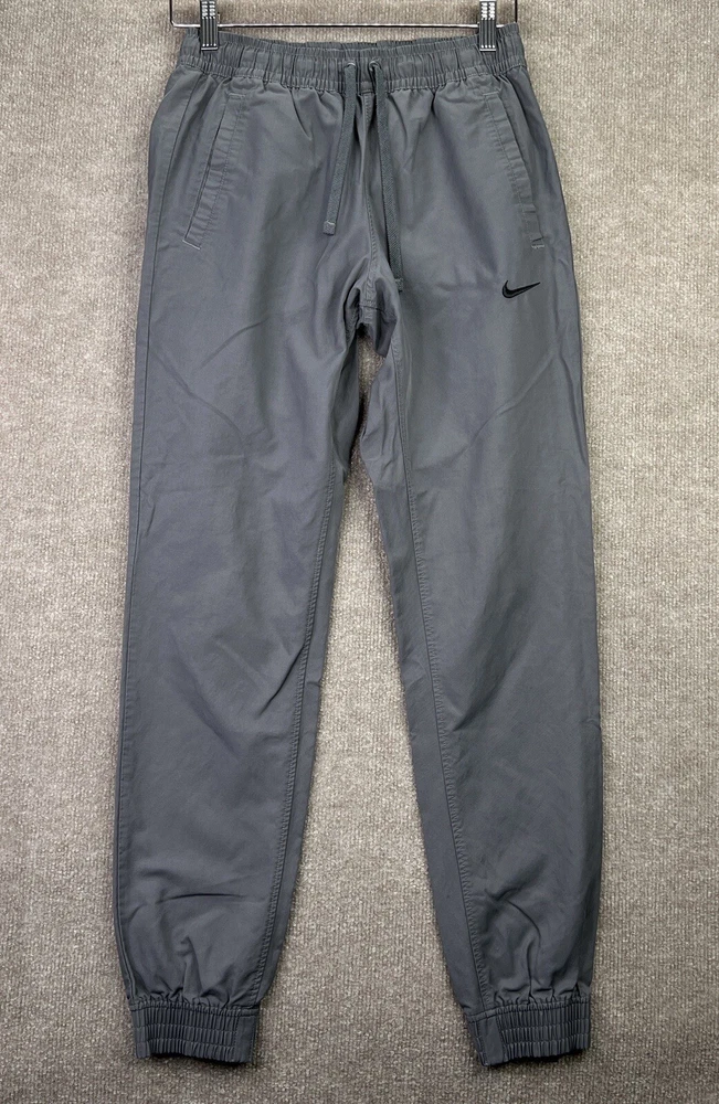 UPC: Does not apply Leg Style: Tapered Style: Jogger Compression Area: Leg Performance/Activity: Gym & Training, Hiking, Running & Jogging, School, Walking, Weightlifting Closure: Drawstring Country/Region of Manufacture: China Color: Gray Brand: Nike Model: Jogger Pants Department: Men Vintage: No Size: S Theme: Athleisure, Sports Features: Comfort, Easy Care, Elastic Waist, Pockets, Drawstring Season: Fall, Spring, Summer, Winter Pattern: Solid MPN: 934592 Occasion: Activewear, Casual Personalize: No Material: Cotton, Nylon Size Type: Regular Type: Pants gtin13: Does not apply Inseam: 28 in Handmade: No Garment Care: Machine Washable Fabric Type: Woven Waist Size: 26 in