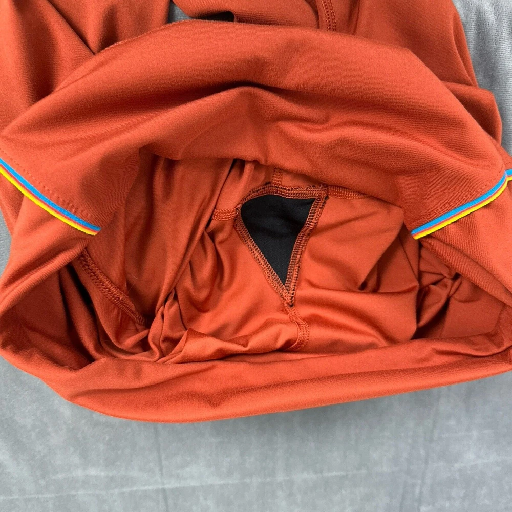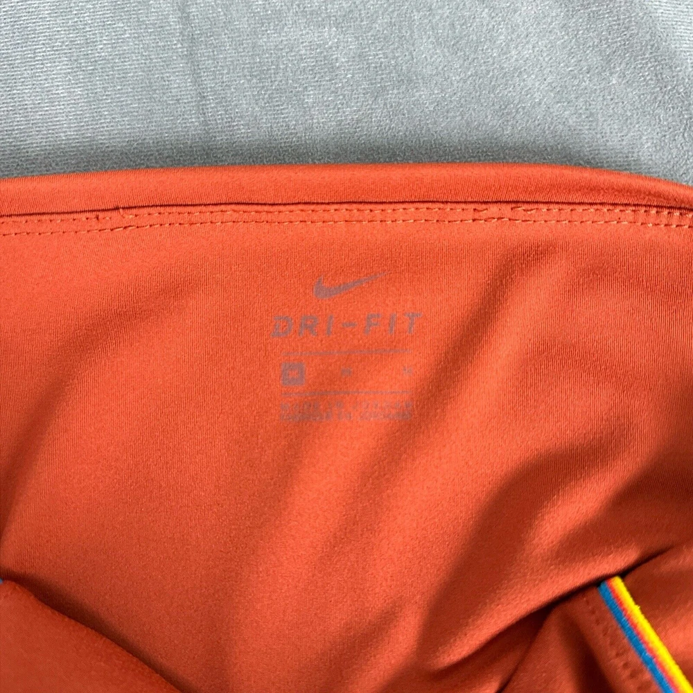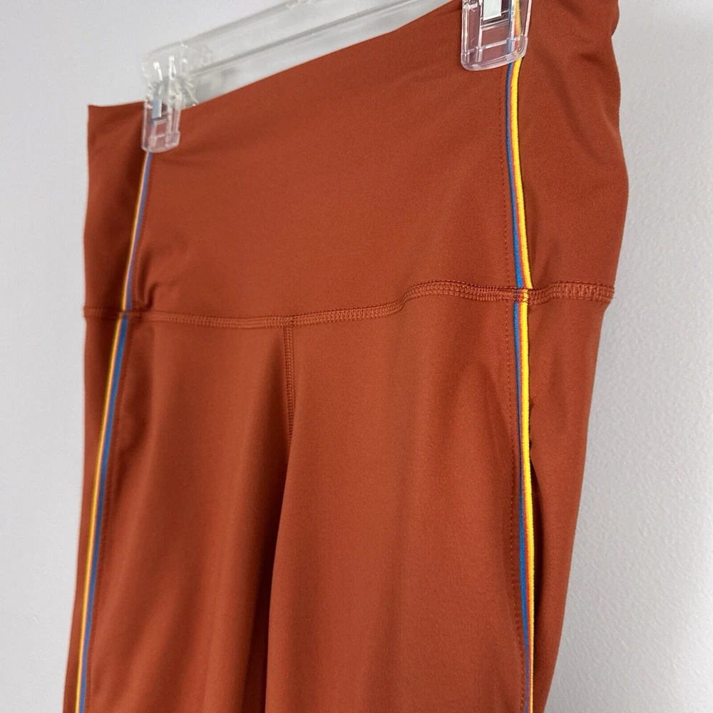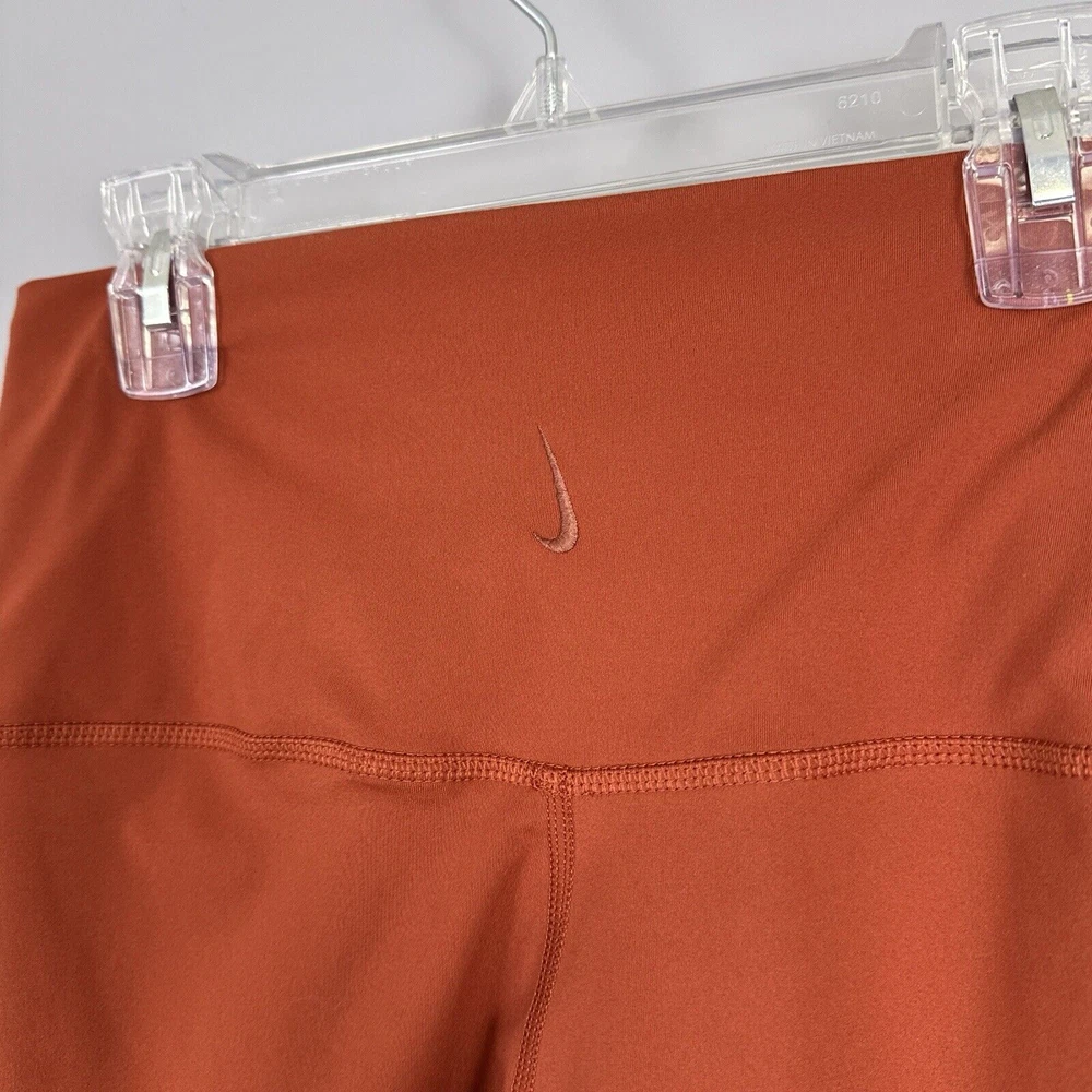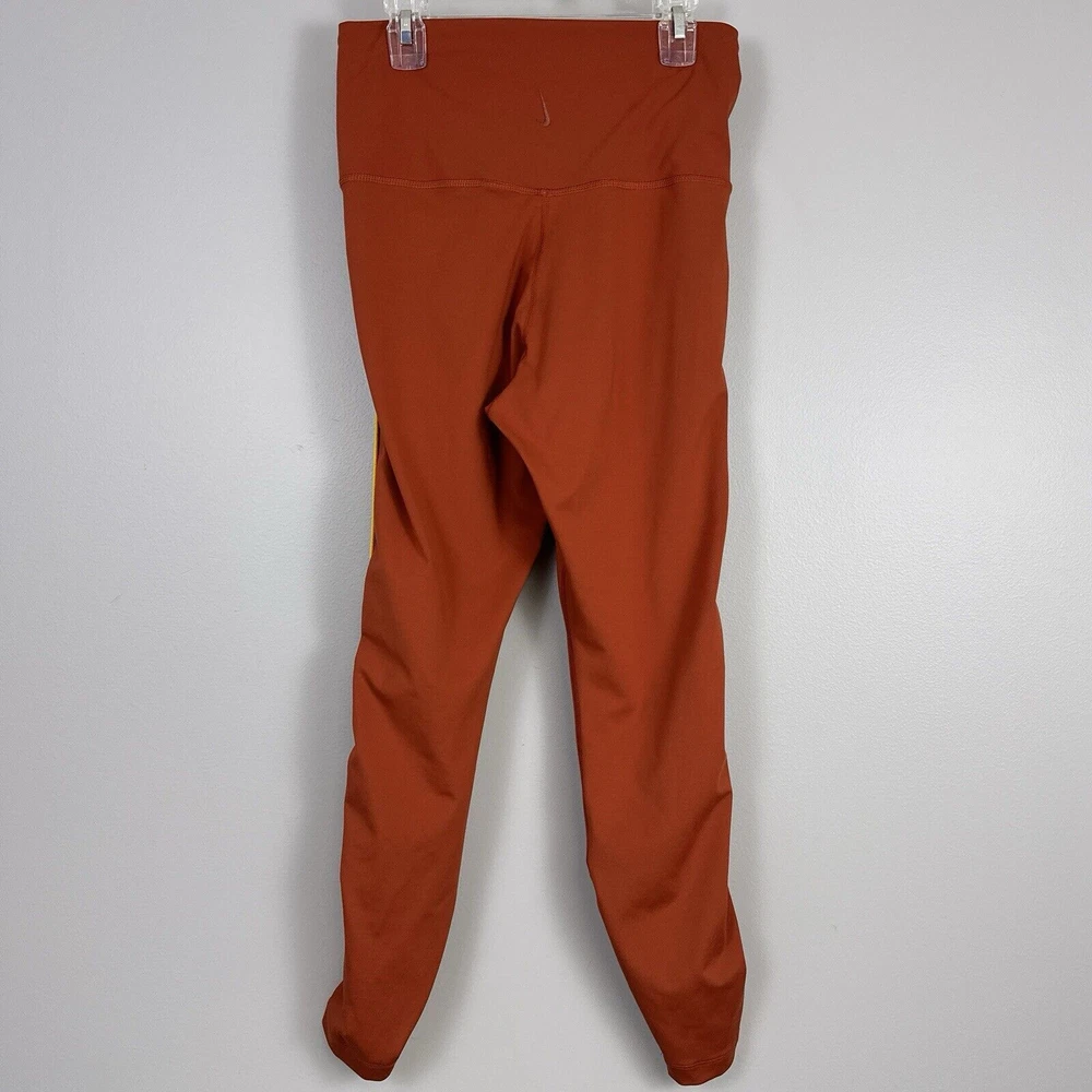 Listed is a Nike Dri-fit yoga 7/8 rust orange leggings, with retro color stripes down sides. Wide waistband for comfort. Style CU5360. Size: Medium Fabric: 87% polyester / 13% spandex Condition: Excellent preowned condition. Measurements: - Lying flat, waist across: 13" unstretched, lower waist 14" - Inseam: 26" Shipping cost is calculated to USPS costs based on weight of items. Thank you for looking, please message with any questions!