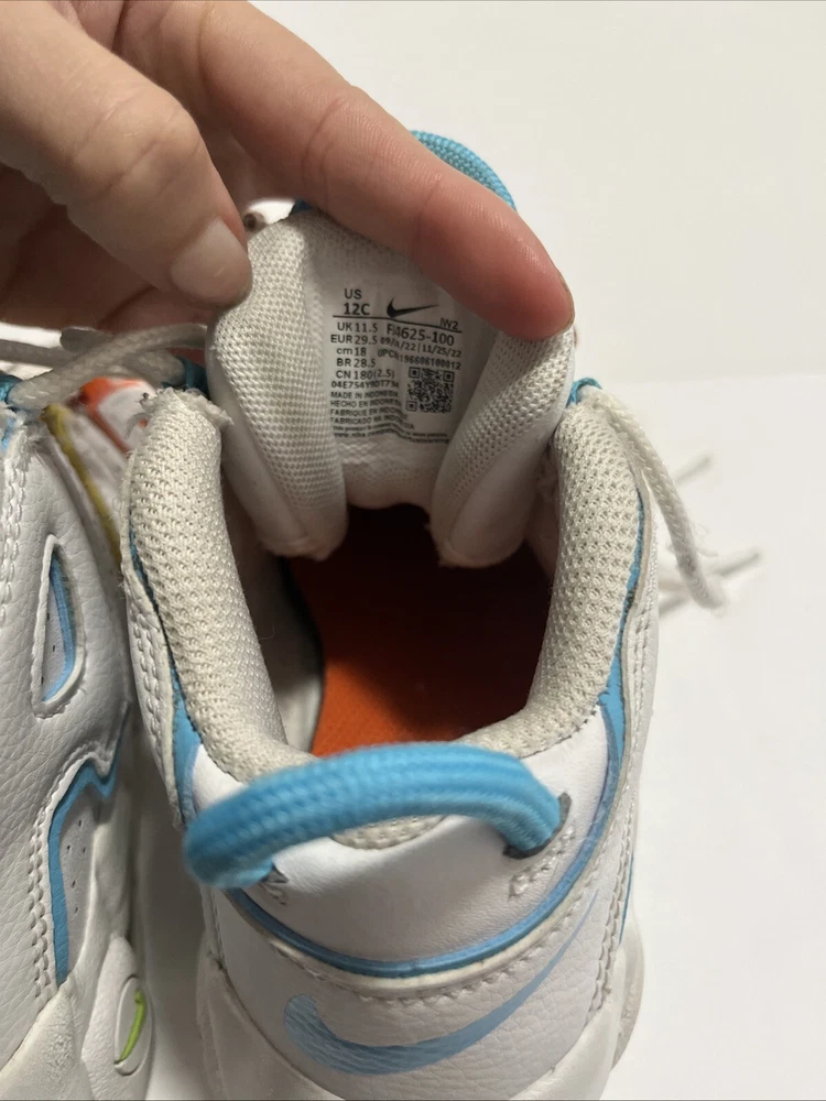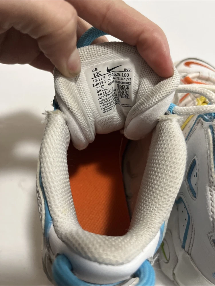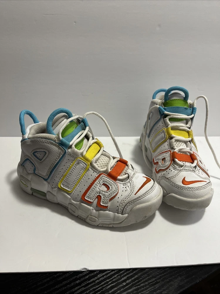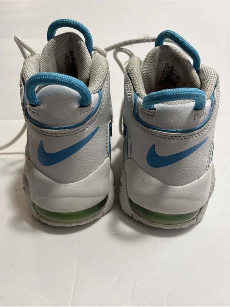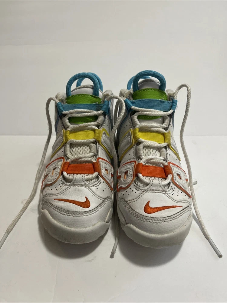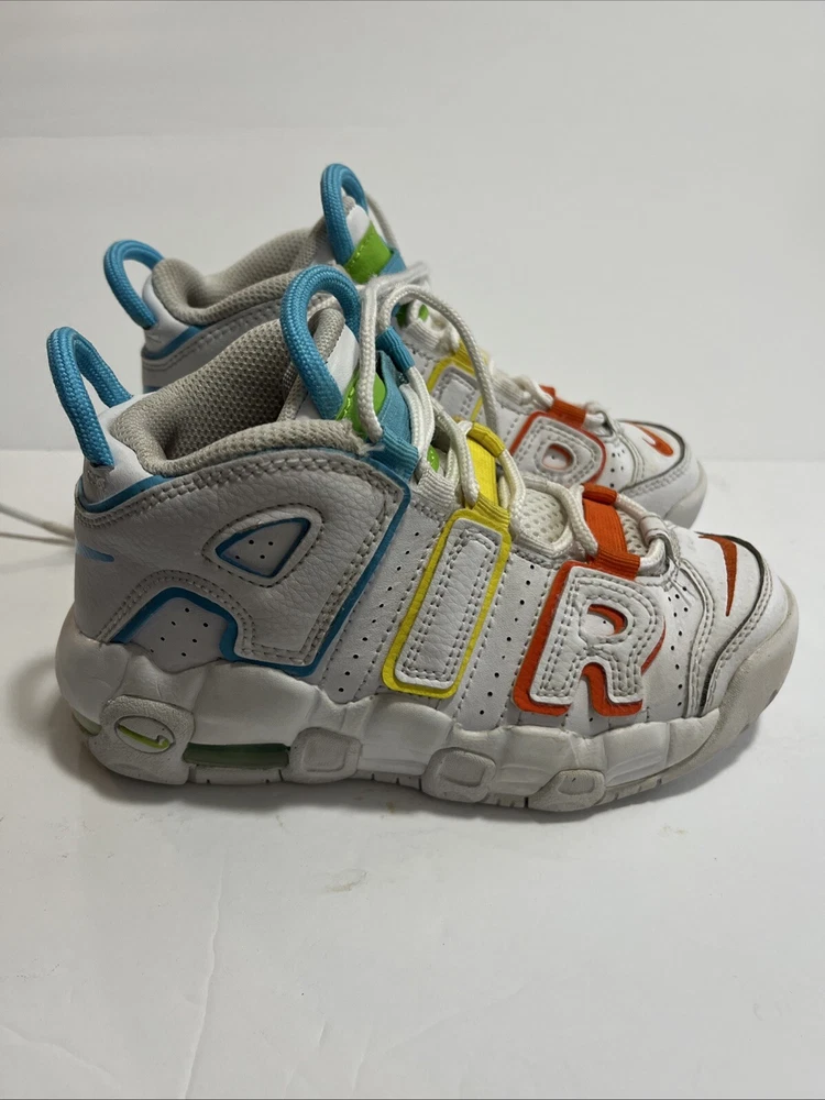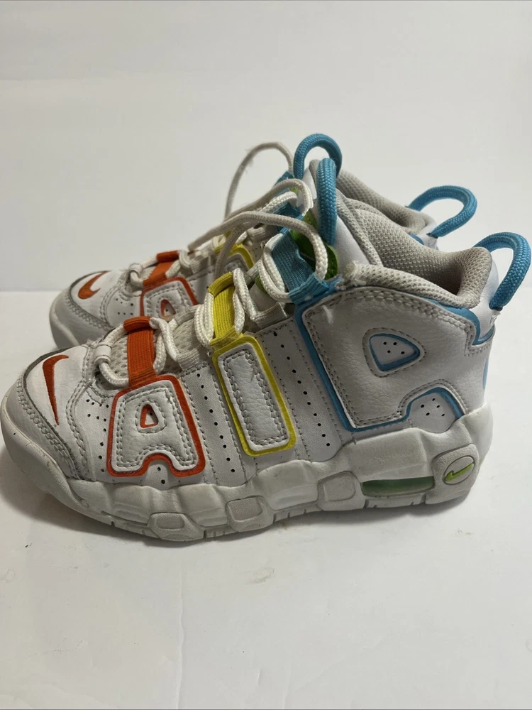 Elevate your child's style with these Nike Air More Uptempo sneakers. The mid-top shoe shaft style and lace-up closure provide a comfortable and secure fit, while the white faux leather upper material adds a touch of elegance. These unisex kids' shoes are perfect for walking, school, and basketball. The colorful theme of the sneakers is sure to make your child stand out from the crowd. With a US shoe size of 12C, these shoes are ideal for kids in this size range. The Nike Air More Uptempo model is a popular choice for athletic shoes, and these won't disappoint.