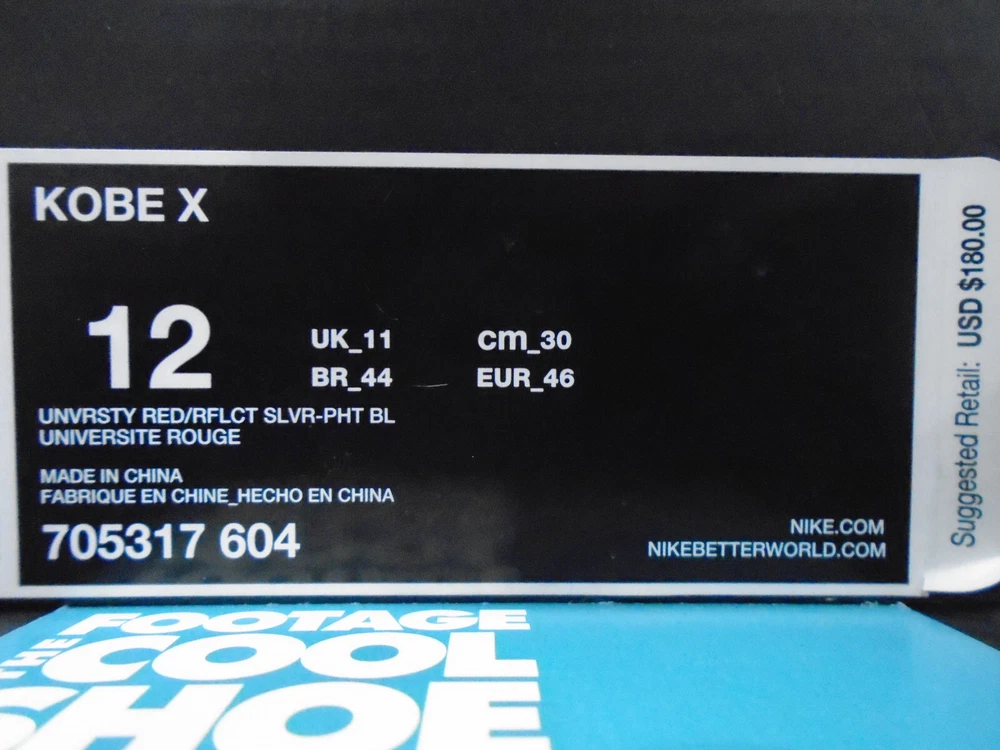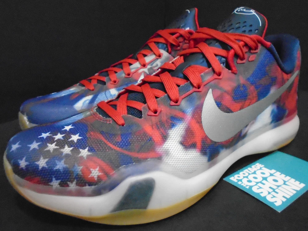 ITEM: 2015 Nike Kobe X ‘ JULY 4TH – INDEPENDENCE DAY ’ (university red/reflect silver/photo blue colorway) - Men's US size 12 STYLE NUMBER: 705317-604 CONDITION: Brand New – Deadstock – Never Worn INCLUDED ACCESSORIES: Original Box ADDITIONAL NOTES: This rare colorway is impossible to find in this size and condition. Guaranteed to be 100% AUTHENTIC MERCHANDISE or your money will be refunded in full. SATISFACTION IS 100% GUARANTEED PAYMENT METHODS: eBay Payment Methods Cash or Credit Card (if picked-up locally @ our shop in Orange, CA) FOOTAGE By THECOOLSHOESHINE! 2740 East Chapman Ave. Orange, CA 92869 SHIPPING & HANDLING: Double boxed via eBay shipping services with delivery confirmation. Please be sure to view all our other listings & contact us with any questions or concerns. Thank you!