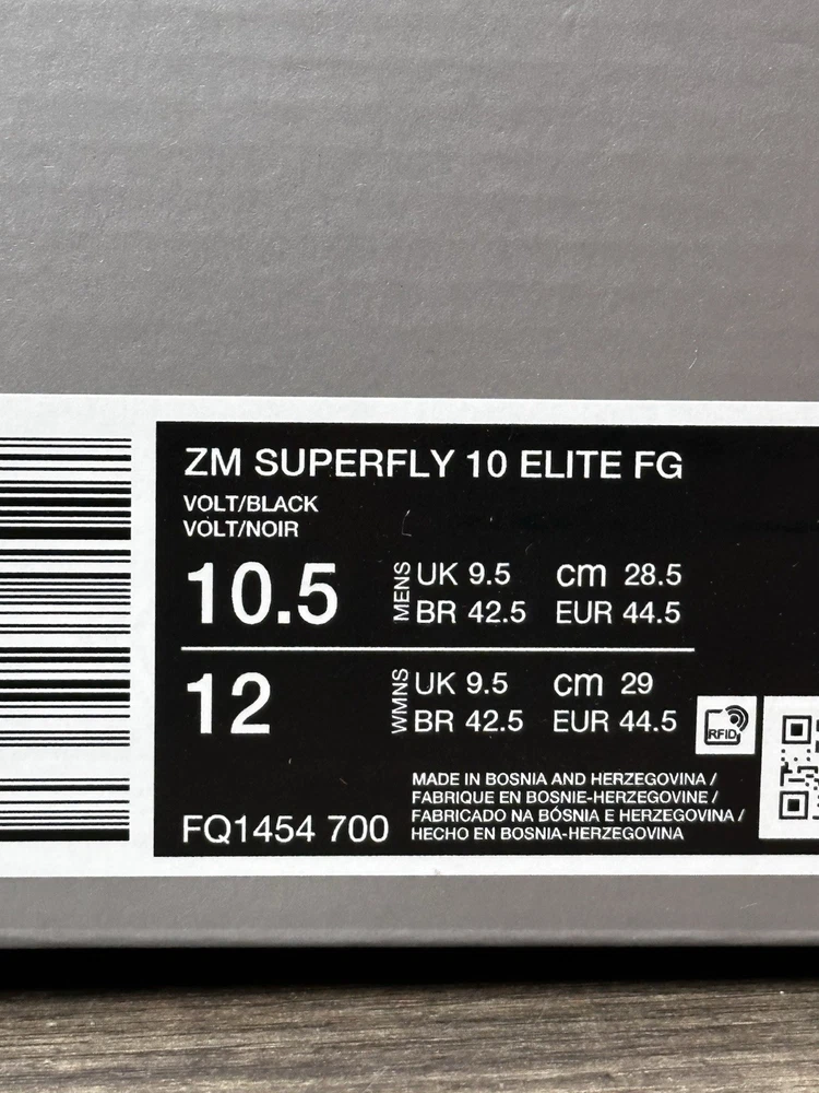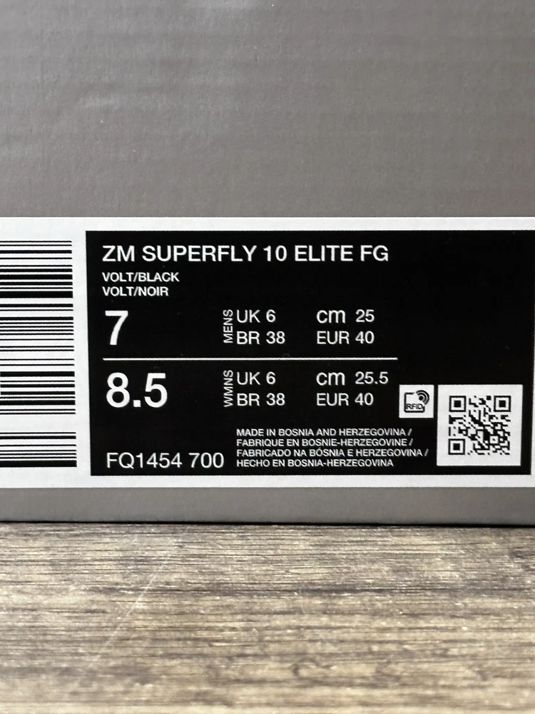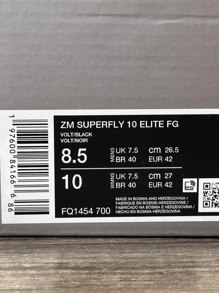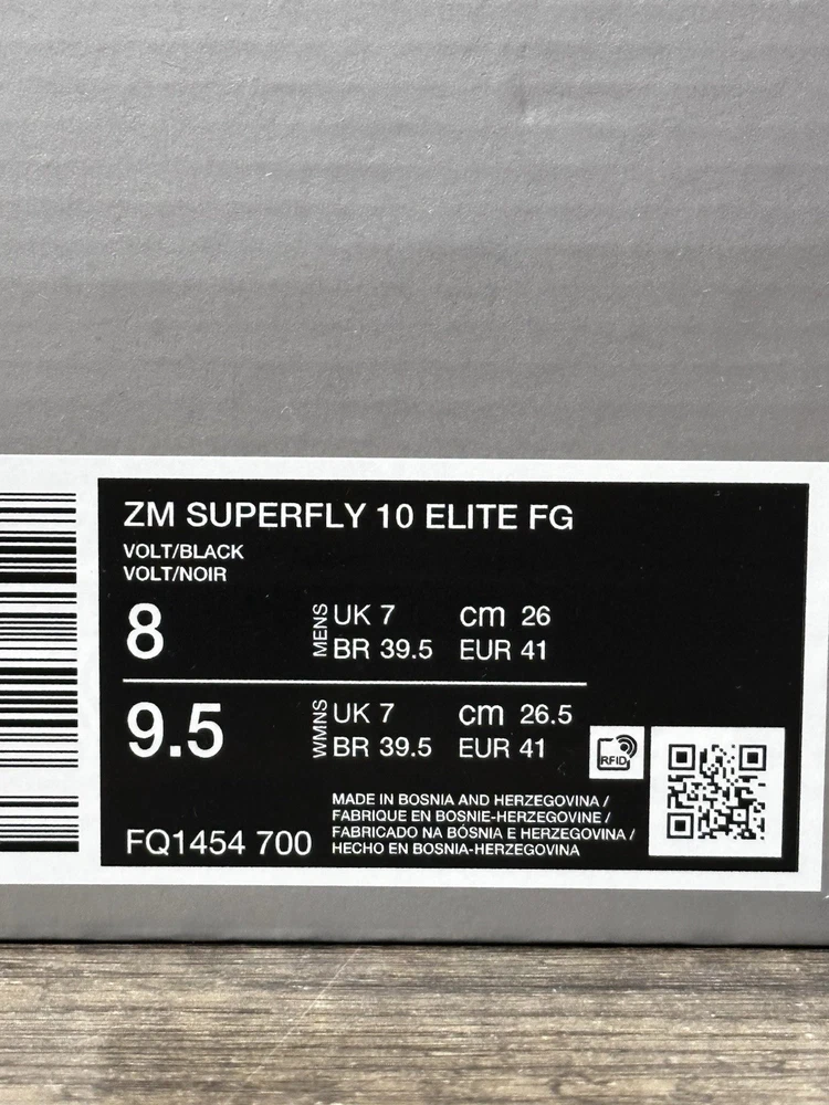 Thank you for considering our store! We appreciate your business and support! Item: Nike Zoom Mercurial Superfly 10 Elite FG Mad Voltage Size: Mens Size 7-11 Box may have some minor shelf wear or shipping wear such as small tears , dent , etc. Shoe is new i and unused. “New with box without lid" Item number: FQ1454-700 You must do so from your end within one hour of the order. Communications between buyer & seller are blocked by Ebay from the moment you purchase or at the acceptance of an offer. 100% authentic No lid Shipped to you fast via USPS Priority Mail We consider all reasonable offers! With that said, we invite you to “watch" our items to receive special offers sent directly to you! Thank you for visiting