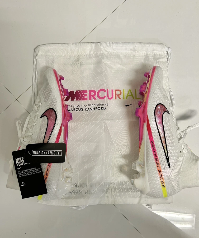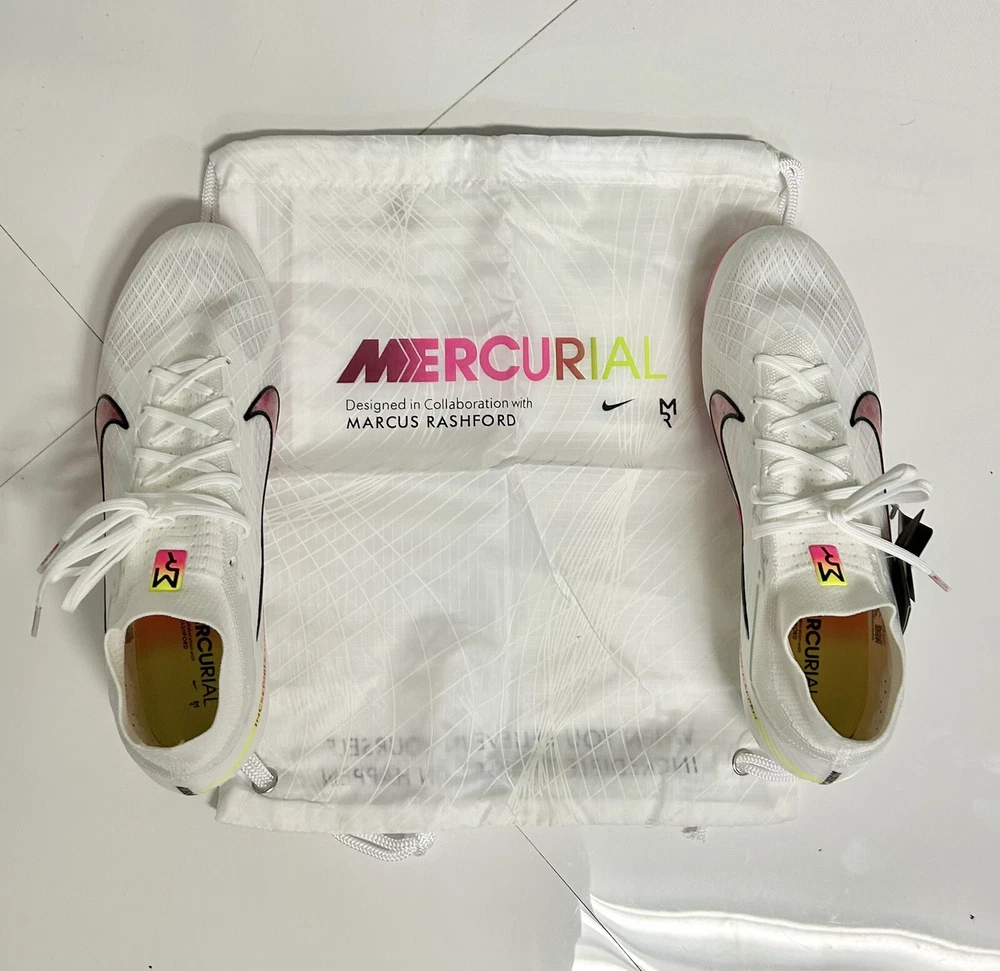 This listing does not come with the bag!!! I repeat this listing doesn’t come with the bag it is same shoe just without the bag. Nike Zoom Mercurial Superfly 9 Elite Marcus Rashford FG Limited Edition US 10. Shipped with USPS Priority Mail.