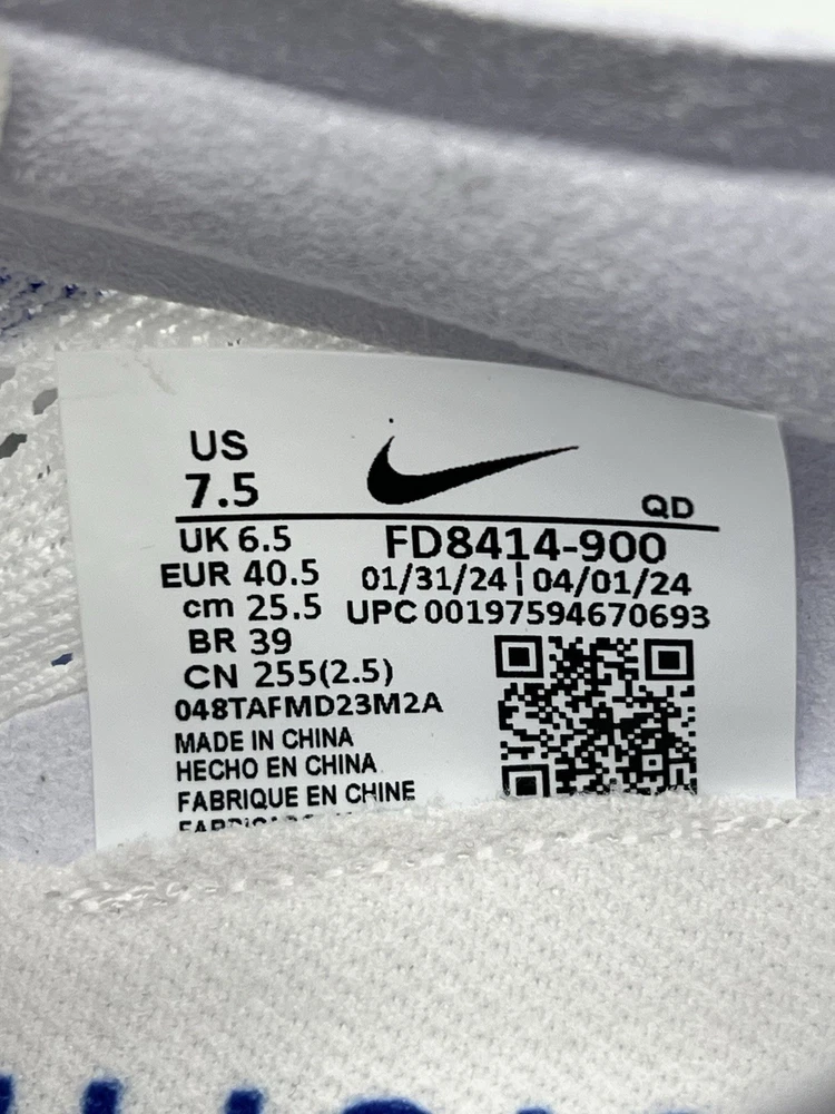 FD8414-900 Experience the ultimate in track and field performance with the Nike ZoomX Dragonfly 2, a racing spike designed for unisex adults. The size Men’s 7.5 US / Women size 9 (6.5 UK, 40.5 EU) shoe boasts a sleek white mesh upper with breathable properties, ensuring your feet stay cool and comfortable during intense workouts. Equipped with a robust metal cleat, this shoe provides superior traction on the track, making it perfect for gym training, school sports, and running events. The Nike ZoomX Dragonfly 2's limited edition design, styled with the iconic 'Blueprint' colorway, offers a visually striking look to complement its high-performance features. The lace-up closure ensures a secure fit, while the lightweight construction keeps your stride quick and agile. Whether you're sprinting or jumping, the shoe's comfort and performance are unmatched, ready to elevate your athletic game year-round.