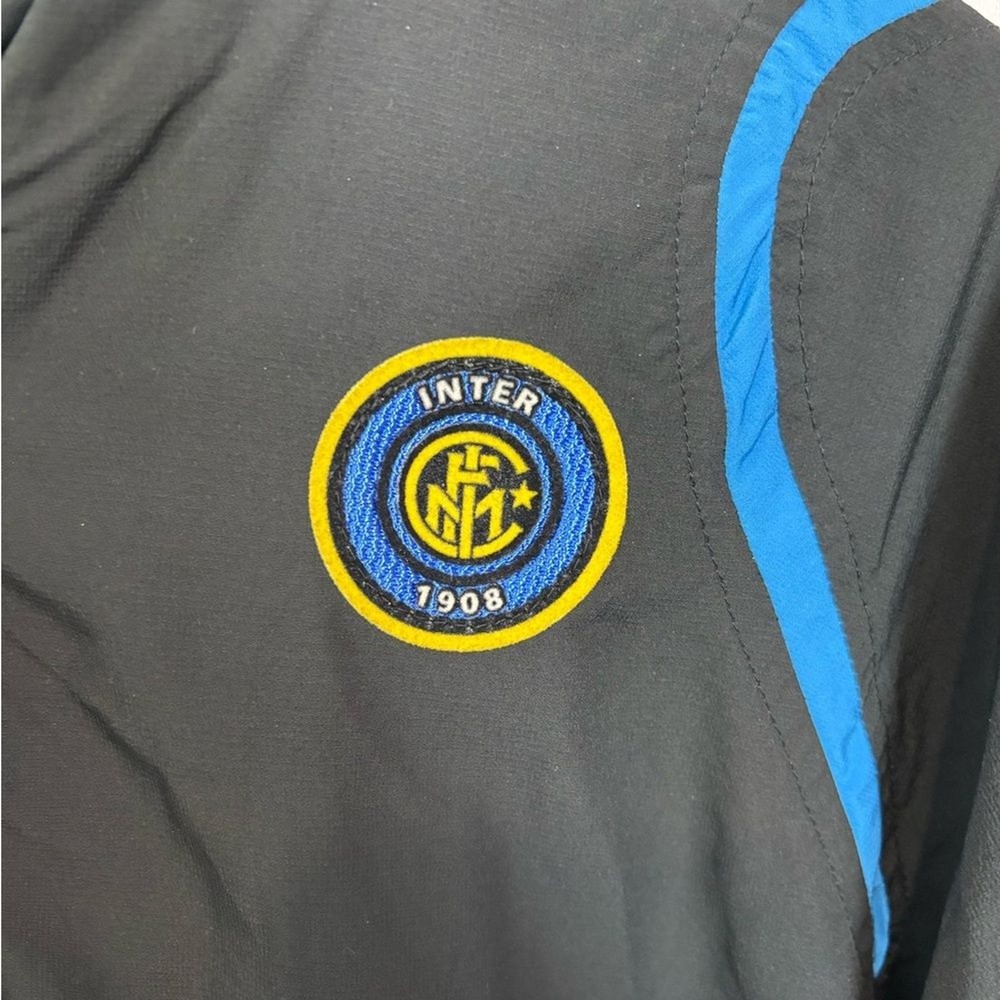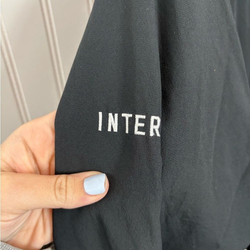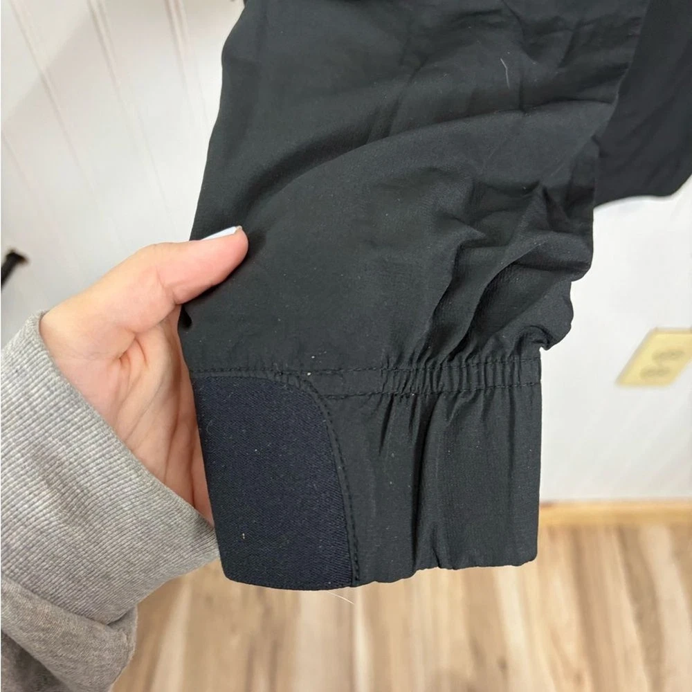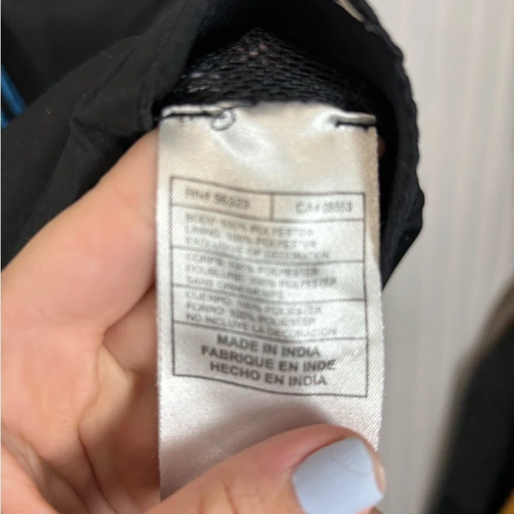Nike windbreaker for men. Black with blue trim. Lightweight and sporty. Size small