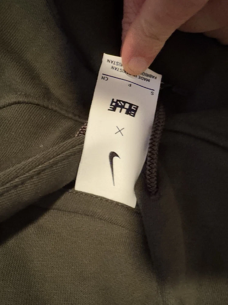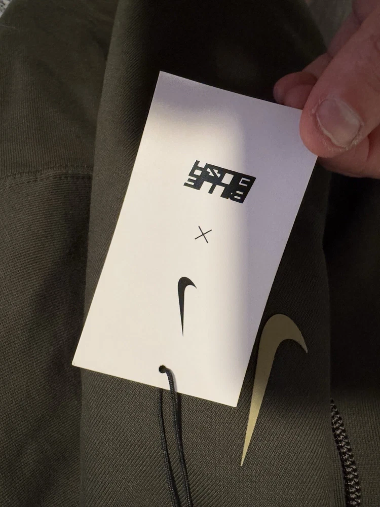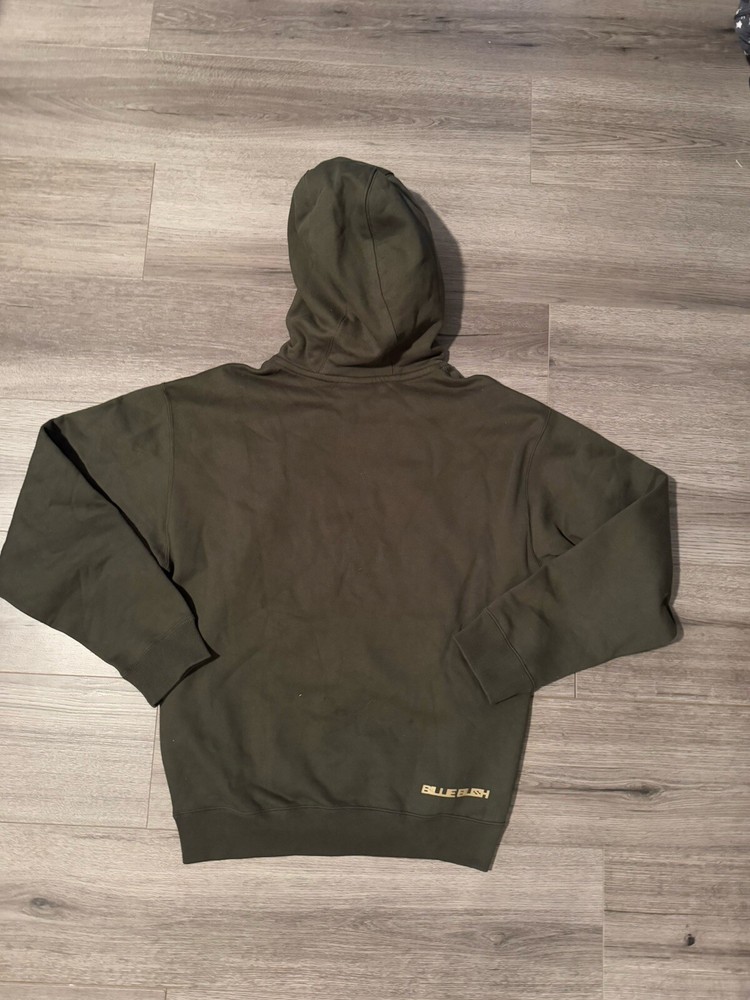 No damage my lighting is terrible Unwanted birthday gift of my sons 😂 Nike x Billie Eilish Fleece Hoodie Green This Nike and Billie Eilish Hoodie is a super roomy, ultrasoft hoodie with a vertical Swoosh on the left chest and Billie Eilish graphics printed in silicone on the back. Crafted with dropped shoulders, the hoodie also has a spacious hood and kangaroo pocket. DQ7750-355