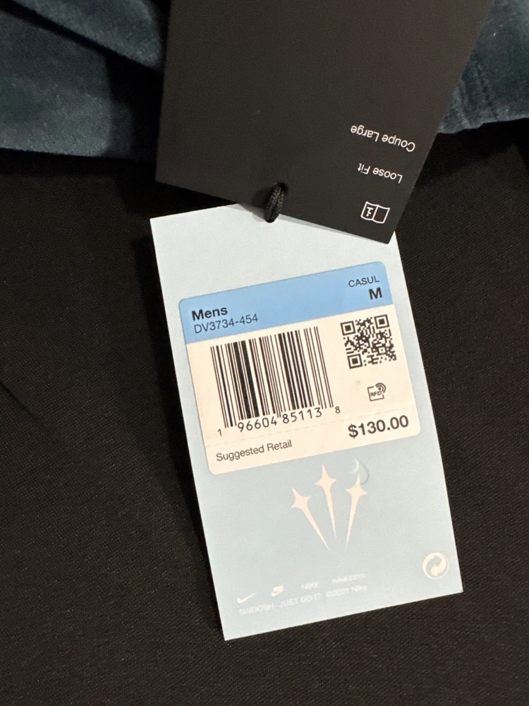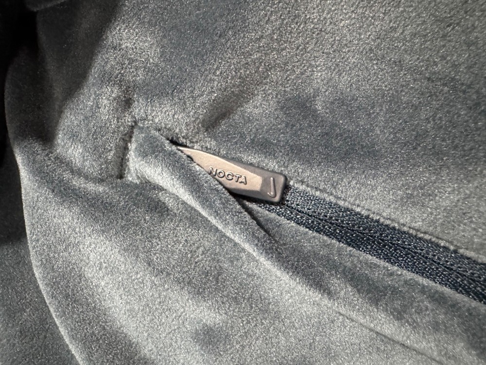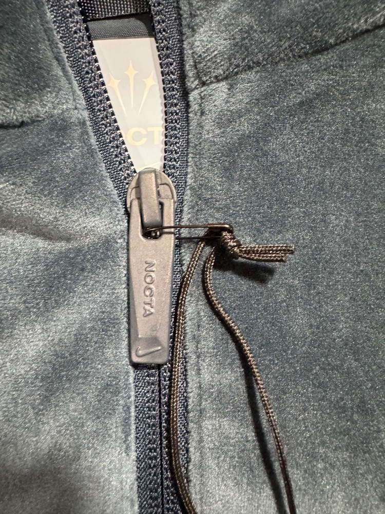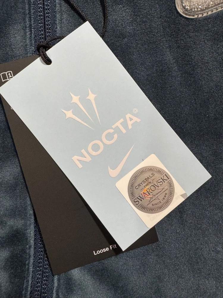 The Nike x NOCTA Swarovski Velour Zip Jacket is a stylish and luxurious men's jacket in size M. Made with soft velour and fleece fabric, it features a solid multicolor design with a full zip closure. This relaxed fit jacket is perfect for the colder seasons of winter, fall, and spring, adding a touch of sophistication to any outfit. With the iconic Nike branding, this zip jacket combines comfort and style for the modern man.