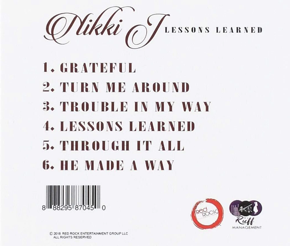 Further Details Title: Lessons Learned Condition: New Country/Region of Manufacture: USA Format: CD Artist: Nikki J No Of Discs: 1 Record Label: CD Baby EAN: 0888295870450 Missing Information? Please contact us if any details are missing and where possible we will add the information to our listing.