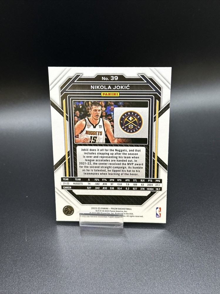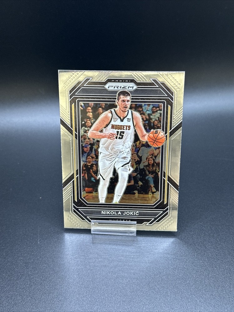 This 8 card lot features Nikola Jokić, the MVP of the Denver Nuggets in the National Basketball Association (NBA). Each card is produced by Panini and includes the Optic, Prizm, and Select series. These sports trading cards are perfect for any basketball fan, especially those who admire Jokić's skills on the court. The lot includes cards that showcase Jokić in action and highlight his achievements, making them great collector's items for fans of the Denver Nuggets or the NBA in general. Whether you're looking to add to your collection or simply want to own a piece of basketball history, this 8 card lot is a must-have. Free shipping