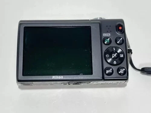 Nikon COOLPIX S5100 12.2MP 5x Optical Zoom CCD Digital Camera - 100% Working Package included -Nikon COOLPIX S5100 Camera - Wrist strap - Battery - SD memory card - **Model Name:** Nikon CoolPix S5100 - **Camera Type:** Compact, point-and-shoot digital camera - **Announcement Date:** August 2010 - **Body Design:** Sleek, slim, and agile with a rounded form factor and a black finish on the rear for a slim appearance. The camera features diamond cutting and a metal ring around the lens, emphasizing its premium look and feel. **Sensor and Image Quality:** - **Effective Pixels:** 12.2 megapixels for high-resolution images. - **Image Sensor:** 1/2.3-inch RGB CCD sensor with approximately 12.39 million total pixels. - **Maximum Resolution:** 4000 x 3000 pixels, allowing for large prints and detailed images. - **Image Ratio:** 4:3 and 16:9 aspect ratios for flexibility in framing and composition. **Lens and Zoom:** - **Lens:** NIKKOR 5x optical zoom lens with a focal length of 5.0 to 25.0mm, equivalent to a 28-140mm lens in 35mm format. - **Aperture Range:** f/2.7-6.6 for control over depth of field and low-light performance. - **Digital Zoom:** Up to 2x, equivalent to approximately 280mm in 35mm format. **Focus and Shooting:** - **Focus Range:** Normal focus range from approx. 45 cm (1 ft. 6 in.) to infinity, and macro mode from approx. 2 cm (0.8 in.) to infinity at the wide-angle setting. - **Vibration Reduction (VR):** Lens-shift type to minimize camera shake and ensure sharper images. **ISO and Exposure:** - **ISO Sensitivity:** Ranges from ISO 100-3200, with auto settings that adjust the ISO from 100-1600 and fixed range auto settings from ISO 100-400 or 100-800. - **Shutter Speed:** 1/1500-1 sec. at ISO auto, 1600, 3200; 1/1500-2 sec. at ISO 800; 4 sec. in Fireworks show scene mode. **Display and Monitor:** - **LCD Monitor:** 6.7 cm (2.7-in.) TFT LCD with approximately 230k-dots, featuring an anti-reflection coating and brightness adjustment for clear viewing in various lighting conditions. **Video and Movie:** - **HD Movie Recording:** Capable of recording high-definition 720p movies at 1280 x 720 pixels at 30 frames per second. **Storage and Connectivity:** - **Storage Media:** Internal memory of approximately 32 MB and compatibility with SD/SDHC memory cards. - **Interface:** Hi-Speed USB for quick and easy transfer of images and videos to a computer or other devices. - **Video Output:** NTSC and PAL systems for global compatibility. **Power and Battery:** - **Battery:** Rechargeable Li-ion Battery EN-EL10 with an approximate battery life of 200 shots for still images. **Physical Specifications:** - **Dimensions:** Approx. 97.1 X 56.9 X 21.6 mm (excluding projections). - **Weight:** Approx. 132 g (including battery and SD memory card).