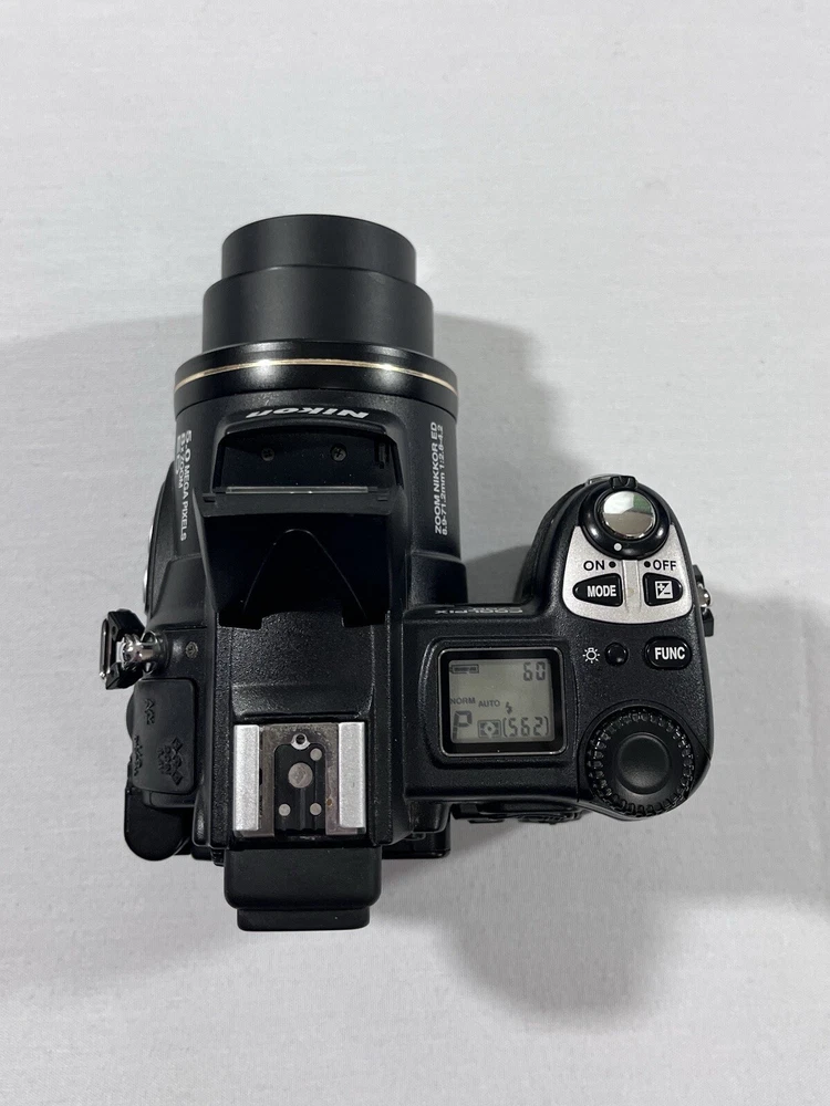 Nikon CoolPix 5700 Compact Bridge Digital Camera Year: 2002 Model No. E5700 Color: Black Camera Weight: 1 lb Includes; 1 Lockable Hard Case With Foam Inserts & Key, 1 Digital Camera With Neckstrap, 1 Lens Cover, 1 Memory Card With USB Adapter, 1 Kastar Battery (New/Open Box), 1 Charger With Power Cable, 1 Nikon UC-E1 USB Adapter. The camera housing is in excellent condition with no obvious signs of wear. It has very good photo quality and the camera is fully functional. There are no scratches or blemishes on the lens. The Hard Case is in very good condition but there are scratches/blemishes on the outer shell. It’s large enough to fit 1 or more additional cameras. Hard Case Interior Dimensions (inches): W 17 1/2 x H 4 7/8 x D 11 1/2 Hard Case Outer Shell Dimensions (inches): W 19 x H 7 x D 13 1/4