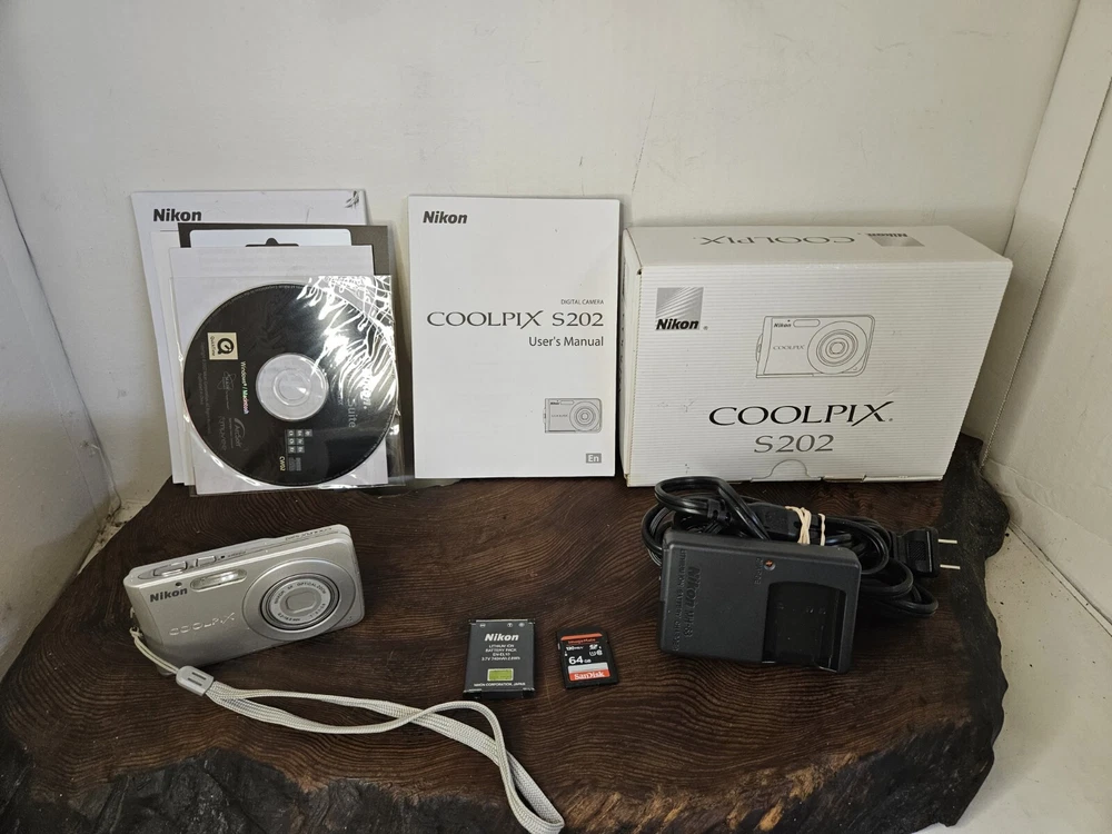 Capture life's precious moments with this Nikon Coolpix S202 compact digital camera. With a maximum resolution of 8.0 MP, 3x optical zoom, and 4x digital zoom, this camera produces high-quality images that are sure to impress. The 2.5-inch screen size provides easy viewing and navigation, while the built-in speaker allows you to share your photos and videos with everyone. This camera features auto focus, date/time stamp, and auto power save to ensure that you never miss a shot. The lithium-ion battery and included charger ensure that you always have the power you need to capture every moment. This camera comes with a 64gb SD card to store all of your photos and videos.