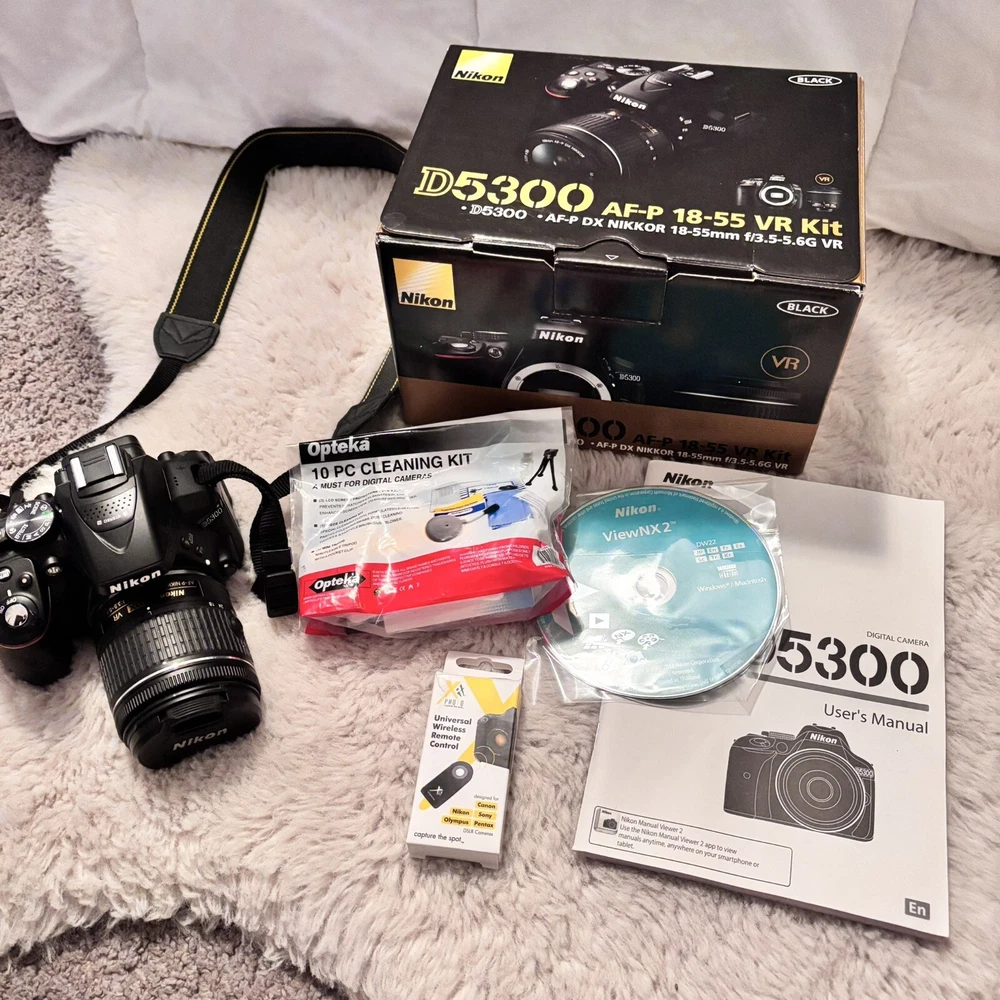 Capture life's precious moments with this Nikon D5300 digital SLR camera. With a 24.2MP maximum resolution and 1080p HD video recording feature, this camera produces stunningly clear and detailed photos and videos. Its 18-55mm f/3.5-5.6G ED VR lens ensures sharp and accurate focusing, while its built-in flash and auto focus make it easy to take high-quality photos. This camera is lightweight and easy to use, with a 3.0".2" screen size that allows you to preview your shots before taking them. It comes in a sleek black color and is powered by lithium-ion and lithium batteries. With USB, micro USB, and HDMI connectivity, this camera is perfect for photography enthusiasts who want to share their photos and videos with the world.