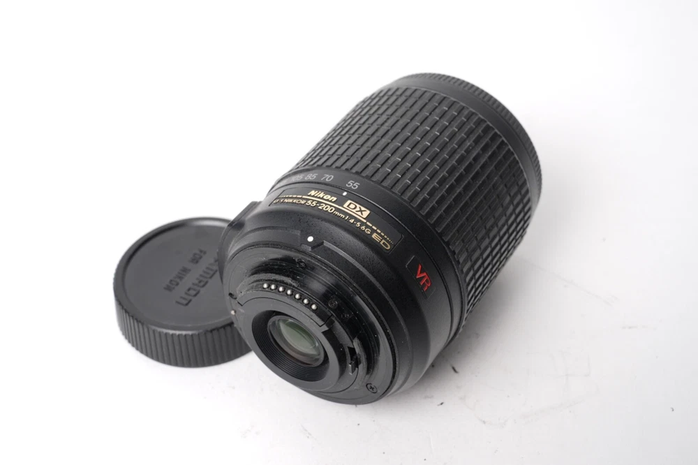 Nikon DX AF-S 55-200mm f/4-5.6G ED VR (AF is slow, rubber off track) #3213668 Used condition is fair. You can find scratches and a little bit of dust on exterior of lens. Rubber is shifting out of the place it should be on on the zoom ring. Lens autofocus is slow.