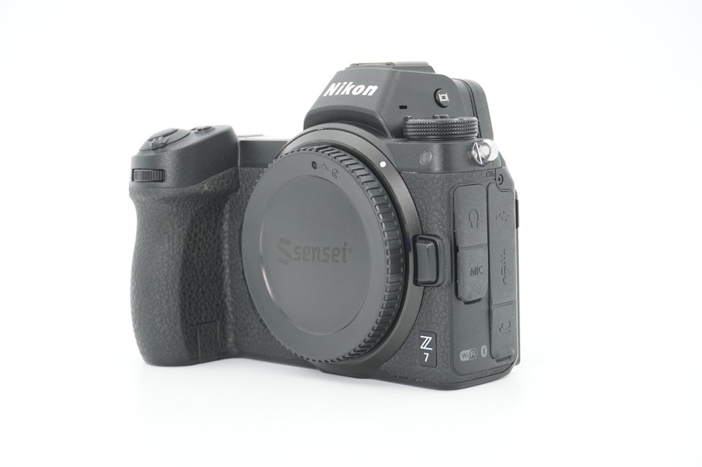 Nikon Z7 mirrorless digital camera. Made in Japan. Serial # 7801971. This is a Nikon full featured mirrorless pro digital camera. Uses Nikon Z mount lenses. 45.7MP resolution on a full frame sensor. Requires QXD media cards. This Nikon Z7 camera has a reported shutter count of approx. 2,000 actuations by the original owner. Fast lens focusing. Large tilting rear viewing screen. Camera features manual, aperture, shutter priority and program exposure. Shutter speed manual setting range is 1/8000-30 seconds.. Camera has built in light meter. ASA - ISO range is 64-25,600 and auto. Camera is Mint- or 9.5 of 10 cosmetic condition. No dents or dings. Few small signs of use. Overall nice clean camera. Perfect working order. Clear and bright viewfinder. This is a fantastic Nikon digital mirrorless camera with superior performance and speed. Camera comes with original box, instruction manual, Nikon body cap, charger and battery. Also one(1) additional after market EN-EL15 battery & AC adapter. Also included is a BONUS leather after market bottom case cover. Sorry no strap. Nikon FZT Nikon AF to Nikon Z mount lens adapter. Made in Japan. Serial #20010479. Allows use of Nikon F mount AF lenses on Nikon Z series mirrorless digital camera bodies. Maintains metering capability and autofocus operation with most Nikon AF lenses. This Nikon FTZ af lens adapter is in Mint- or 9.5 of 10 cosmetic condition. No dings or dents. Almost no signs of use. Good working order. Nikon SB-500 Speedlight electronic flash. Serial #2059159. Compact Nikon SB-500 dedicated speedlight with e-ttl auto exposure, and zoom bounce head w/swivel. SB-500 flash is in Mint/Mint- or 9.5 of 10 cosmetic condition. Perfect working order. Includes original box, instructions, diffuser, stand, and pouch case. Handy flash to have to go with this Nikon Z7 camera. This Mint- Nikon Z7 full frame high resolution 45.7MP digital camera body in very nice condition with Nikon FTZ lens adapter, and SB-500 flash sells with NO RESERVE at a price of $1375. I have more interesting Nikon 35mm SLR items, Medium Format Rangefinder and Reflex cameras, BRASS barrel lenses, Kodak Ektar lenses, Large Format cameras and Lenses, Vintage and Collectibles and Soft Focus Lenses. More great buys on my other auctions, Ebay Store and Web Page.