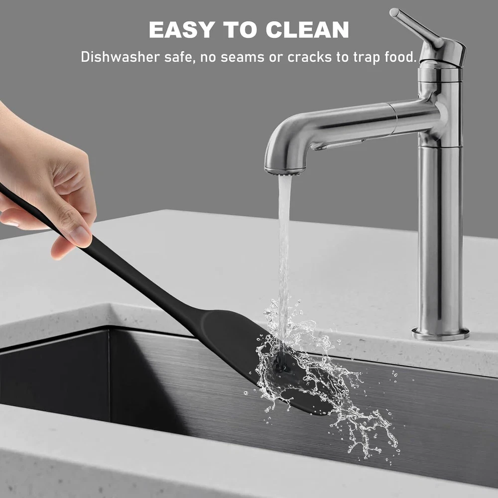 NileHome Silicone Spatula Set, Rubber High 4-pack, Black Product Details Material: Rubber Color: Black Brand: NileHome Size: 4-pack Product Dimensions: 10.98"L x 6.61"W FOOD GRADE SILICONE SPATULA: This silicone spatula set is suitable for cooking, baking, and mixing. Flip eggs or pancakes, make cakes, scrape butter, etc. FEATURES: Heat resistant and easy to clean, the scraper set can withstand temperatures up to 446 °F, so your cooking is always safe and healthy, hand wash or dishwasher safe SPACE-SAVING: The handle has a small hole design, which is easy to hang after cleaning to dry easily; it can also be hung on the kitchen wall for easy access during baking storms SIZE AND APPEARANCE: The silicone spatula set has no gaps on the surface and is not easy to grip food; a variety of sizes can meet your various needs, the small spatula allows children to actively participate in cooking; the large silicone spatula set is sufficient for people's daily baking needs. A great gift idea for mom or friends