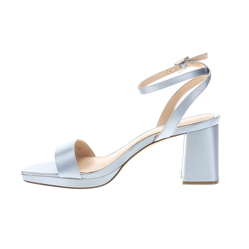 Bergen Block Heel Ankle Strap Platform Sandals Product Details Manmade upper and synthetic lining Adjustable ankle strap for a secure fit Lightly cushioned for enhanced comfort Durable composition leather sole 0.375 inch or 11mm subtle platform for added lift Color: Icy Blue Crystal Satin Achieve icon status with the BERGEN, a minimalist ankle strap sandal designed for versatility and style from day to night. With its chunky 2.75 inch block heel and subtle 0.375 inch platform, this sandal provides a stable lift that combines comfort and fashion effortlessly. The secure, adjustable ankle strap and lightly cushioned insole make it a go to choice for extended wear. Crafted from materials with a hint of sparkle, the BERGEN adds just the right amount of shine to any outfit, whether you're attending a casual brunch or a sophisticated evening event. Additional Details Manufacturer Color: Icy Blue Crystal Satin Color: Blue Occasion: Dress Gender: Womens Age: Adult Brand: