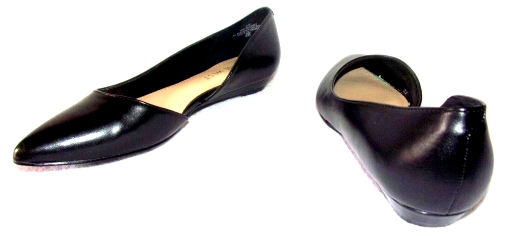 Nine West Black Saige Dorsay Pointed Toe Slip On Flats 6 M D'orsay Ballet Flat Faux-leather upper. Slip-on silhouette. Smooth man-made lining. Lightly padded footbed. Synthetic outsole. Heel Height: 3⁄4