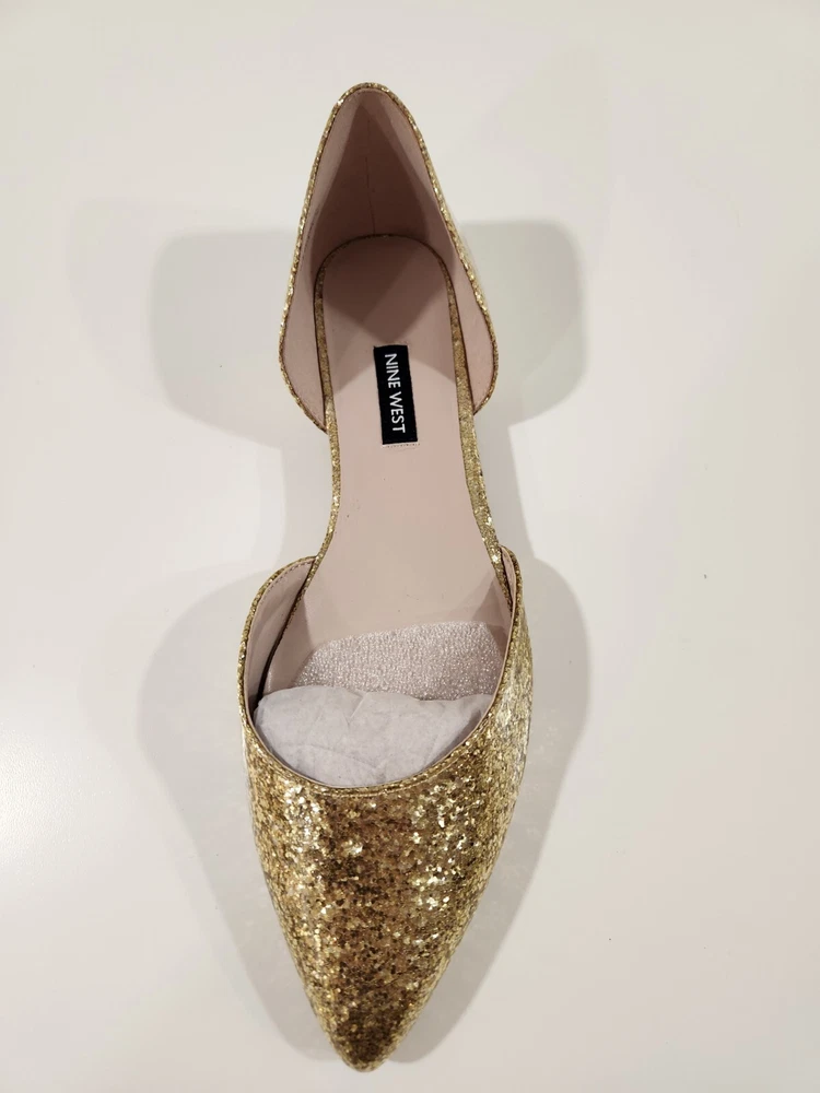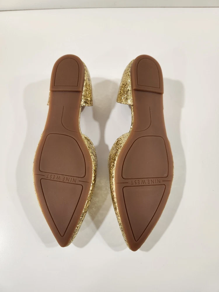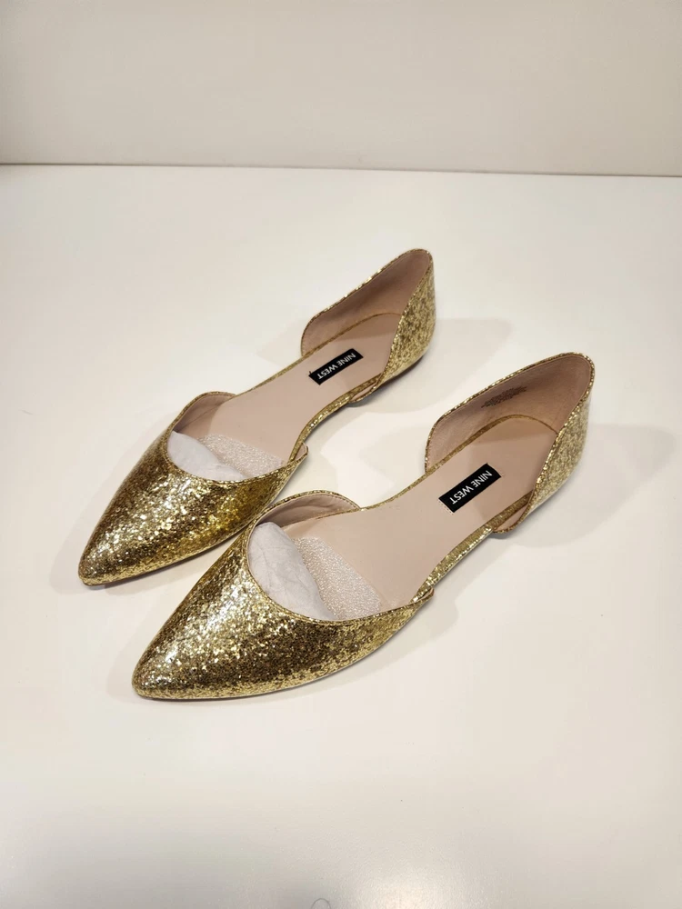 Elevate your shoe game with these stunning Nine West Gold Starship D’orsay Flats. Perfect for any stylish woman, these shoes feature a pump style with a shiny and sparkly gold color theme. The upper material is of high quality, ensuring durability and long-lasting use. These shoes are available in UK Shoe Size 6, US Shoe Size 8, and EU Shoe Size 39, making them a perfect fit for many women. With their flat design, they are comfortable and practical for everyday wear. Purchase these brand new shoes without the box today and add a touch of glam to your shoe collection.