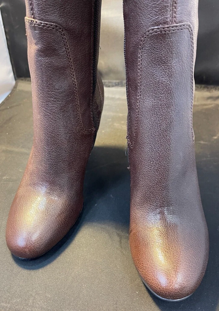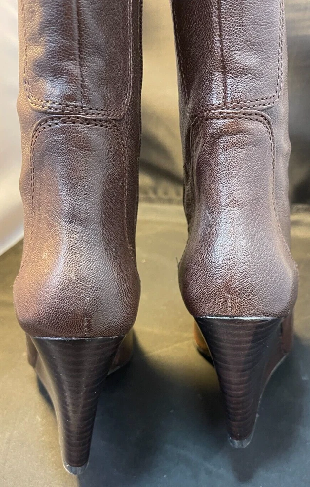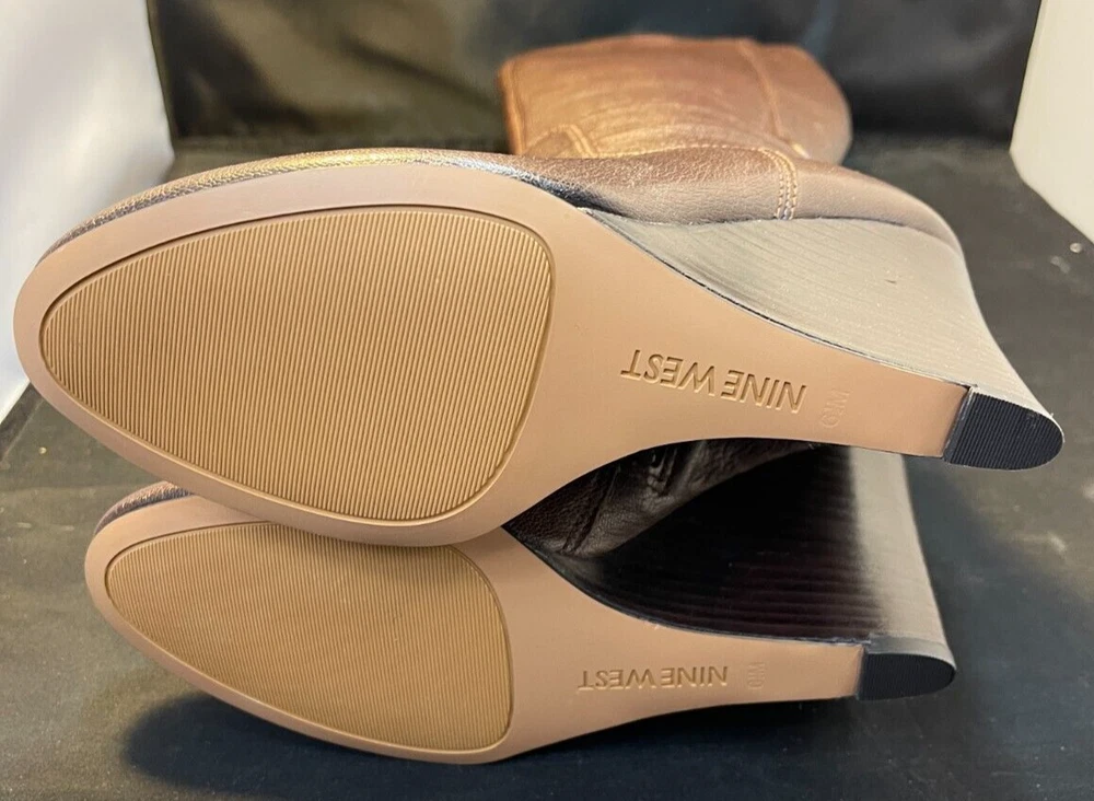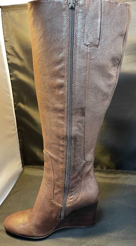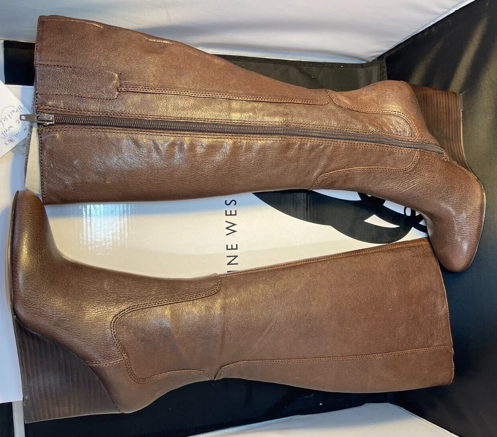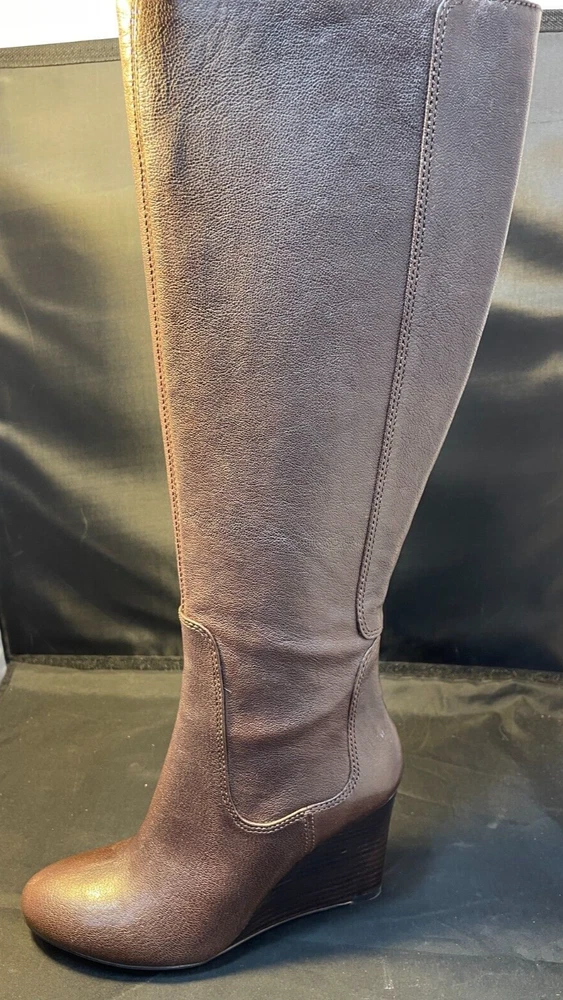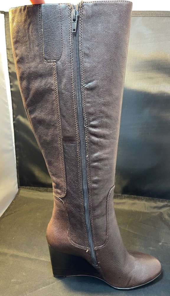 Nine West Heartset Brown Leather Knee High Boot Size 6.5M Brand: Nine West Overall Condition: New in box. See pictures for details. Materials: Leather with man made rubber sole. Shipped with USPS Priority, Flat Rate or, when possible, First Class Mail. Turn up your look with this fierce knee high boot on a chic wedge heel. Knee-length boot with tonal wedge and almond toe. Full-length zip Style: REETA Brand: American Rag Category: Boots Brand Name: Nine West Department: Womens Category: Boots Details for Shopper Size: 6.5 M Shoes Width: 3 inches Heel Height: 3 ¼ inches Heel Type: Wedge Toe Style: Closed Almond Toe Payment Policies We accept payment through PayPal, credit card, and debit card. Please note that the item may be relisted if payment is not received within the 10 day period. Shipping Policies Delivery estimates will be displayed at checkout. In-store pickup is also available if you would like to visit us in store. We ship to Continental United States only. Terms of Sale Each item we sell is unique. There are no exchanges for the same item available. All items are carefully inspected by My Sister’s Closet of Monroe County’s quality control team prior to shipping. Please carefully review item details. If you have questions, please message us regarding the item before purchasing. Note: Due to the different monitor and light effects, the actual color of the item shown might be slightly different from the color in pictures. Return Policy We strive to describe and measure our items accurately. If your order is not what you expected, we accept returns under the following conditions: The item was not as described as listed The wrong item was shipped. The item does not fit. If the wrong item was shipped, we will attempt to replace it with the item originally ordered. Please note - items not returned in the exact same condition, with tags attached, may be subject to a partial refund to account for loss of the item’s value. Please refer to eBay Return policy for more details. You are covered by the eBay Money Back Guarantee if you receive an item that is not described as listed. Return Requirements: The buyer must return the item within 30 days of receipt. Buyer is responsible for return shipping charges. The item(s) must be returned in the original condition, unworn, with tags attached. Thank you for shopping with us! A little bit more about us… My Sister’s Closet is a nonprofit serving women in poverty since 1998. Our mission is to help women move closer to economic self-sufficiency by providing essential career development tools. This includes job training, mentoring, advocacy services, and professional attire for job interviews to help them find employment. We have helped over 2500 women thus far. Most clients we serve have been dealing with homelessness, domestic violence, illness, divorce, job loss, economic recovery and/or lack basic education. Visit Our eBay Store
