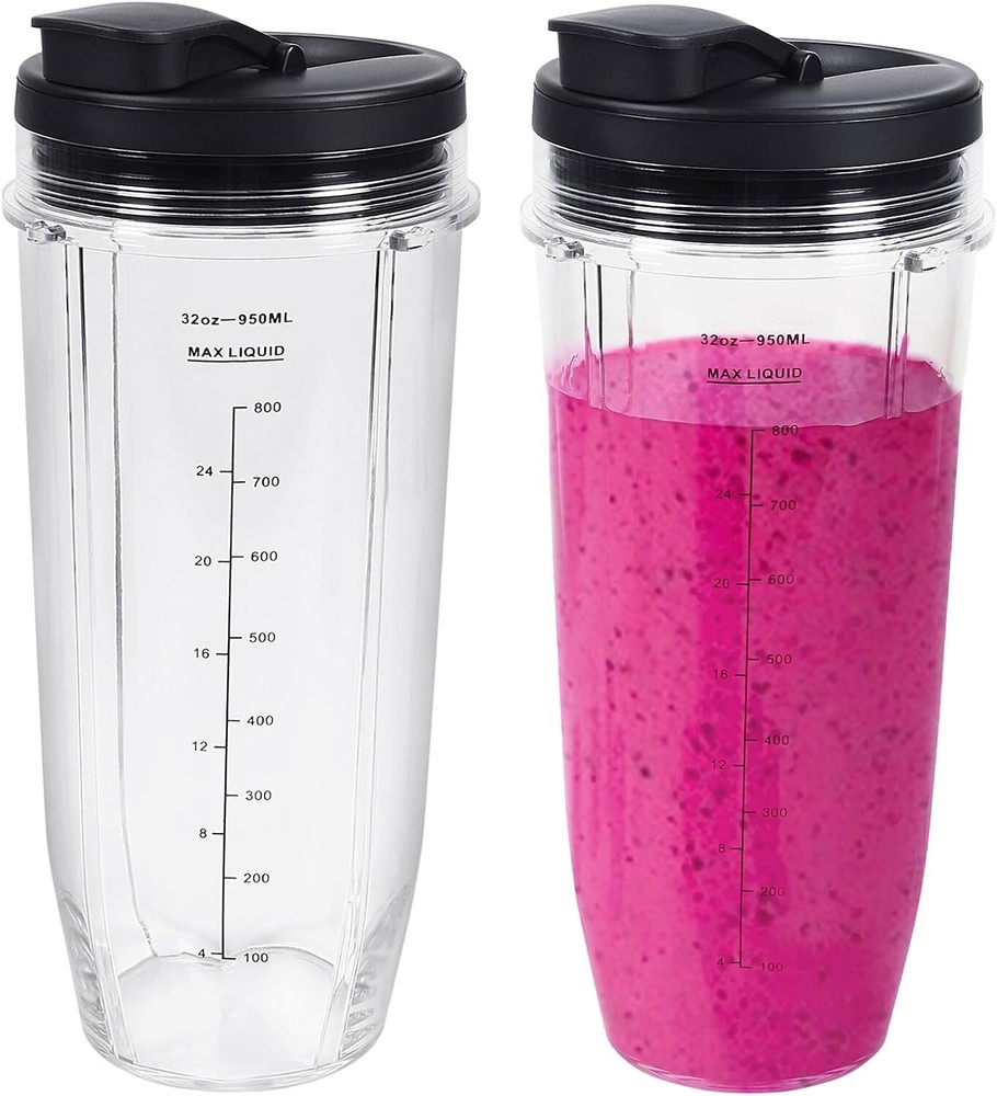 【5-IN-ONE SET】: 2 pack of 32oz ninja replacement cups, 2pack of sip & seal lids and 1 ninja replacement blade. Replace your old or damaged blades and blender cups to give your ninja blender a new look 【MULTI-PURPOSE USE】: The replacement blade and to go lids have good water tightness. You can simply blend right in your cup, twist on the spout lid, and take your drink on the go. No leak Portable cups that pair well with any busy lifestyle that demands on the go convenience 【PERFECT REPLACEMENT】: 32 oz Cups Compatible with Nutri Ninja Pro BL450, BL456, BL480, BL480D, BL481, BL482, BL486CO, BL487A, BL487, BL488W, BL490, BL491, BL492, BL492W, BL640, BL641, BL642, BL642W, BL642Z, BL680, BL680A, BL682, BN751, BN800, BN801, DB751A, NN100, NN100A, NN101, NN102, BL2012, BL2013. NOTE: Please ensure that both the 24oz cups and the 7 fins blade are compatible with your Ninja model before purchasing, otherwise it will not fit your Ninja 【7 FINS BLADE COMPATIBILITY】: Our 7 fins blade is suitable for Nutri Ninja Auto iQ NN100/ NN100A/NN101/NN102/BL2012/BL2013/BL450-30/BL455-30/BL481-30/BL482-30/BL485/BL486CO/BL487/BL487A/BL487T/BL491/BL492/BL492IS-30/BL494/BL640-30/BL641-30/BL642-30/BL680A-30/BL681A/BL681C/BL682-30/BL682QT-30/BL685-30/BL687CO-30/CT680SS/CT680CO2SS/CT641-30 (Please confirm your blender need 7 fins replacement blade before purchasing). Only fit for 18/24/32OZ cups, NOT FIT for 16OZ