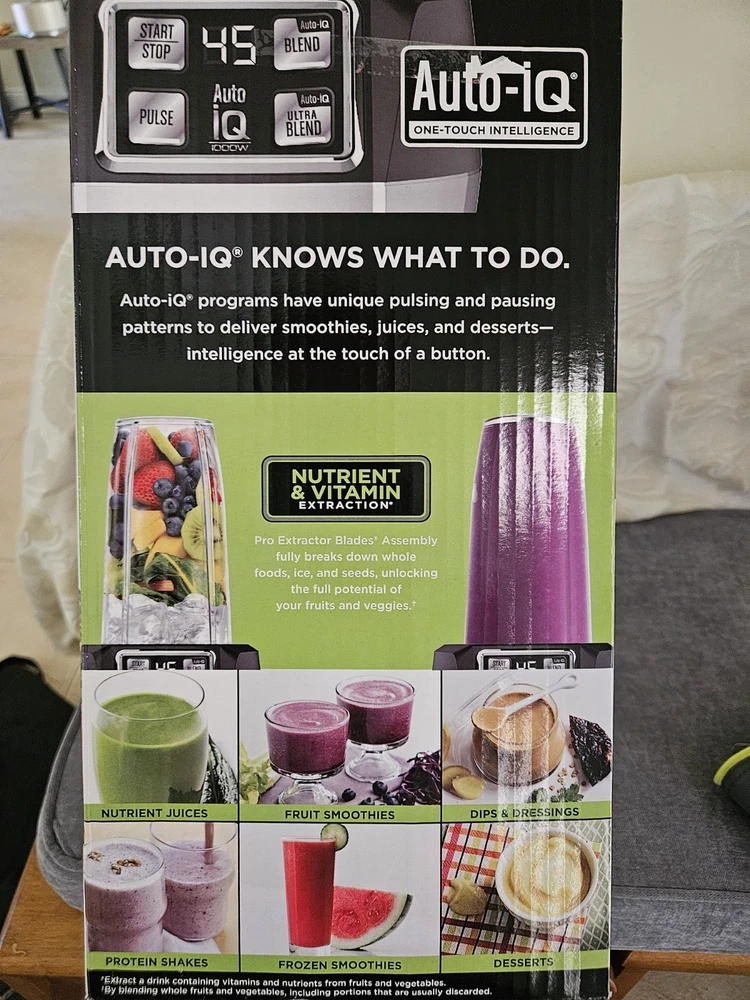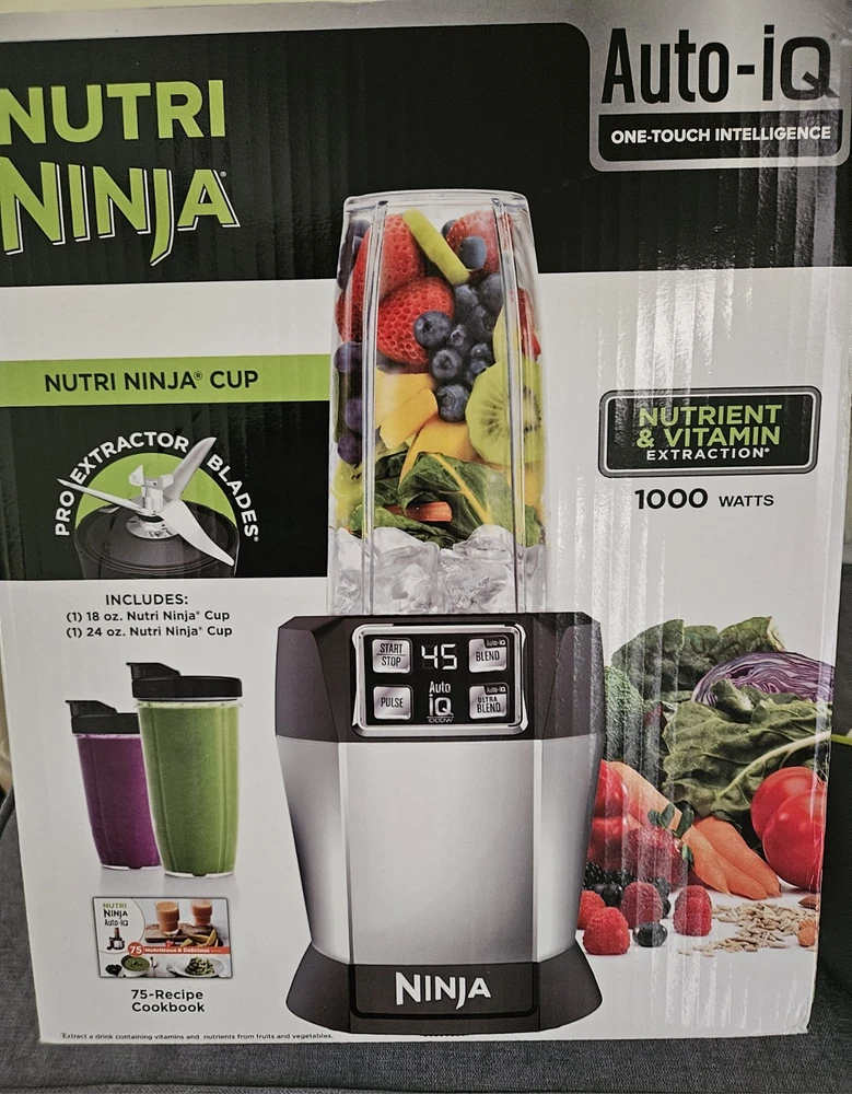 Ninja BL480D 1000W Auto-IQ Blender with 18oz and 24oz Cups in Black Silver