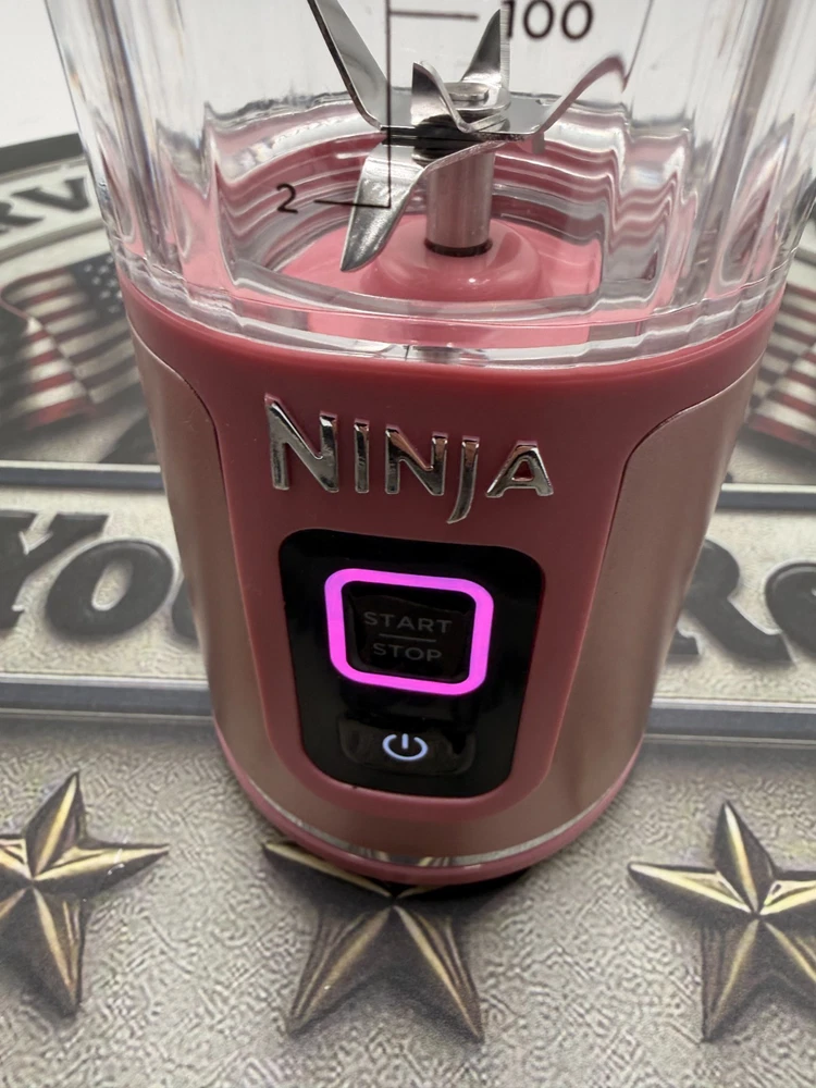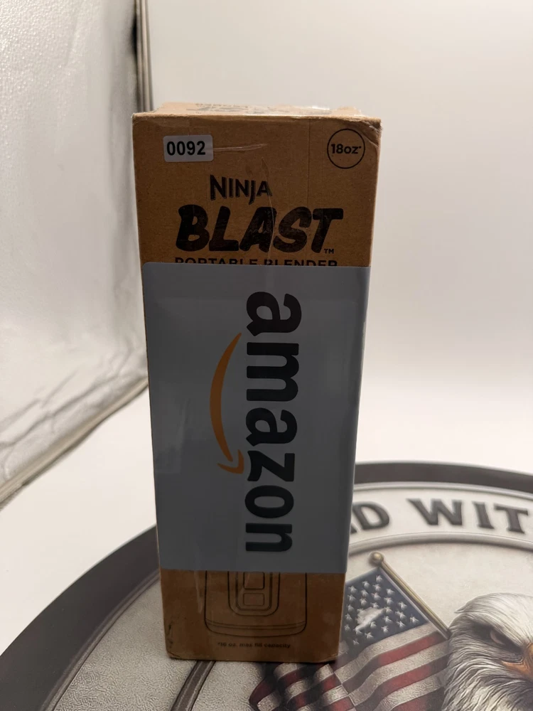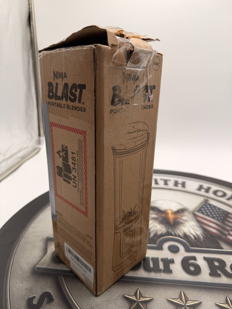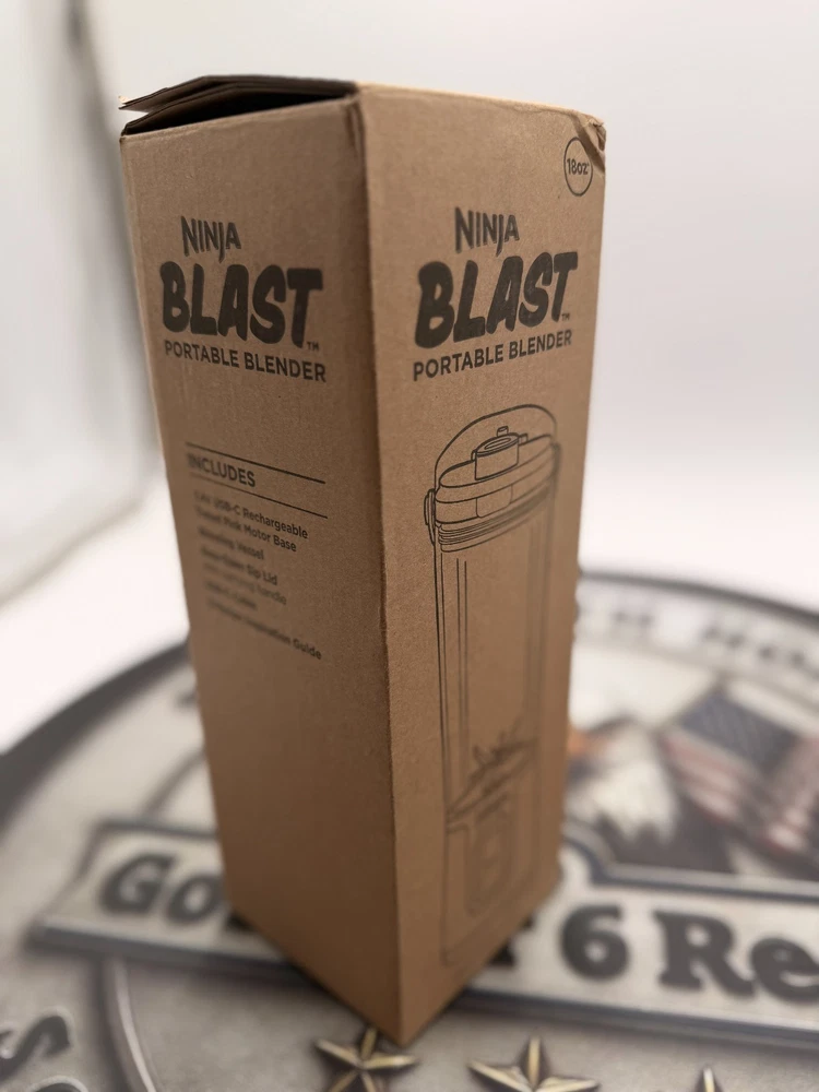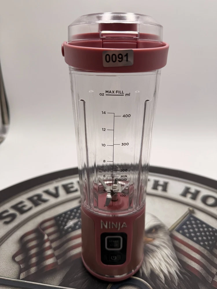 0091 does not have the original box. The Ninja Blast 18 oz Portable Blender with Leak Proof Lid is a compact and convenient smoothie blender in a stylish pink color. Powered by a 12V battery, it is easy to use and perfect for blending smoothies on the go. The plastic material and 18 oz capacity make it durable and efficient for blending your favorite drinks. Complete with a 16 oz blending vessel and an easy-open sip lid with a carrying handle, this portable blender is a practical addition to your kitchen or for outdoor use. Backed by a 1-year manufacturer warranty, the Ninja Blast provides quality and functionality in one sleek package.