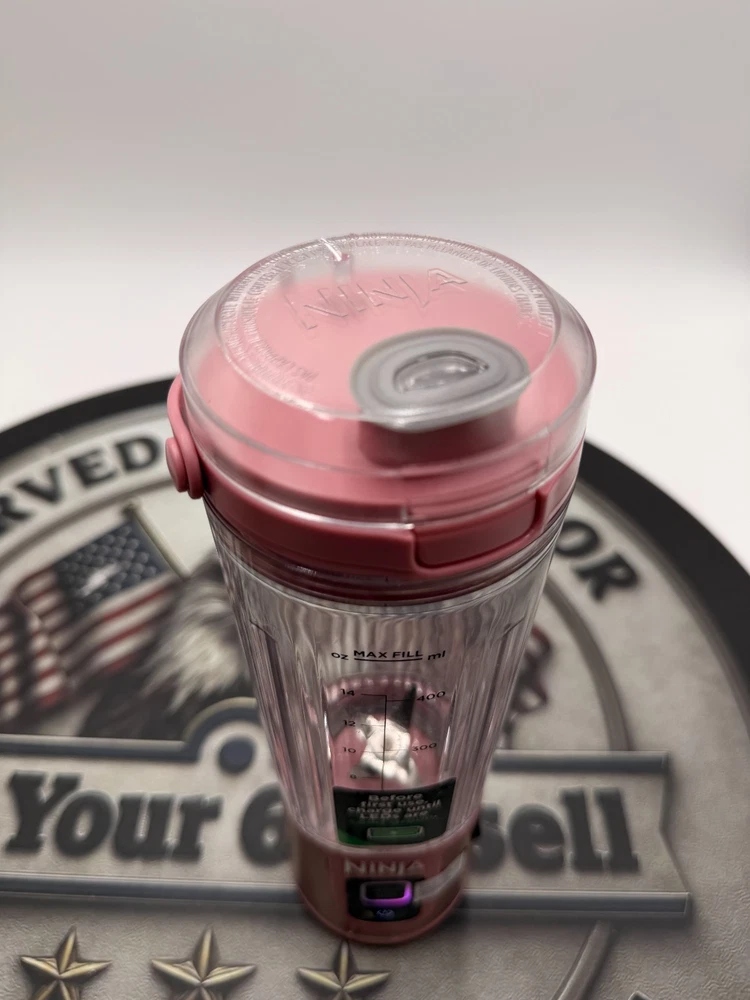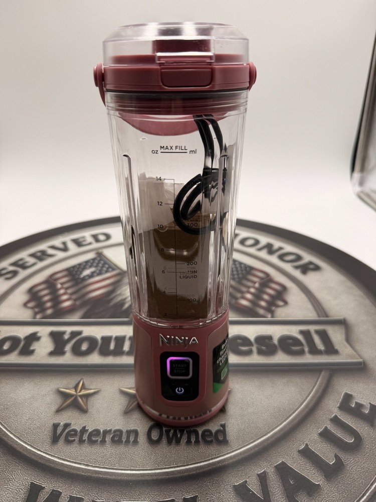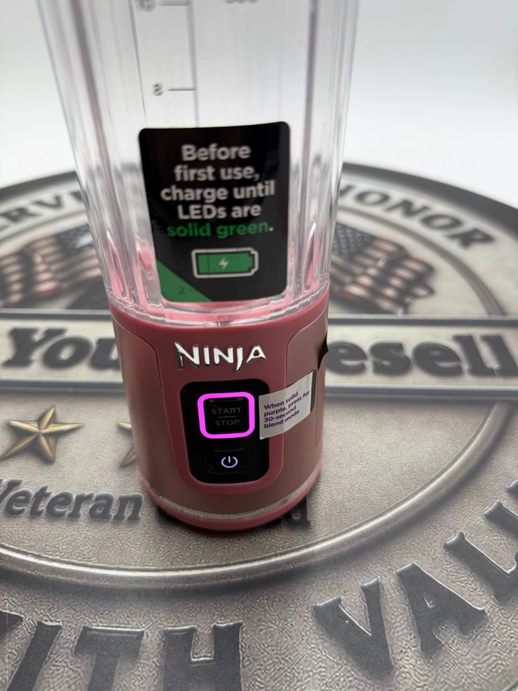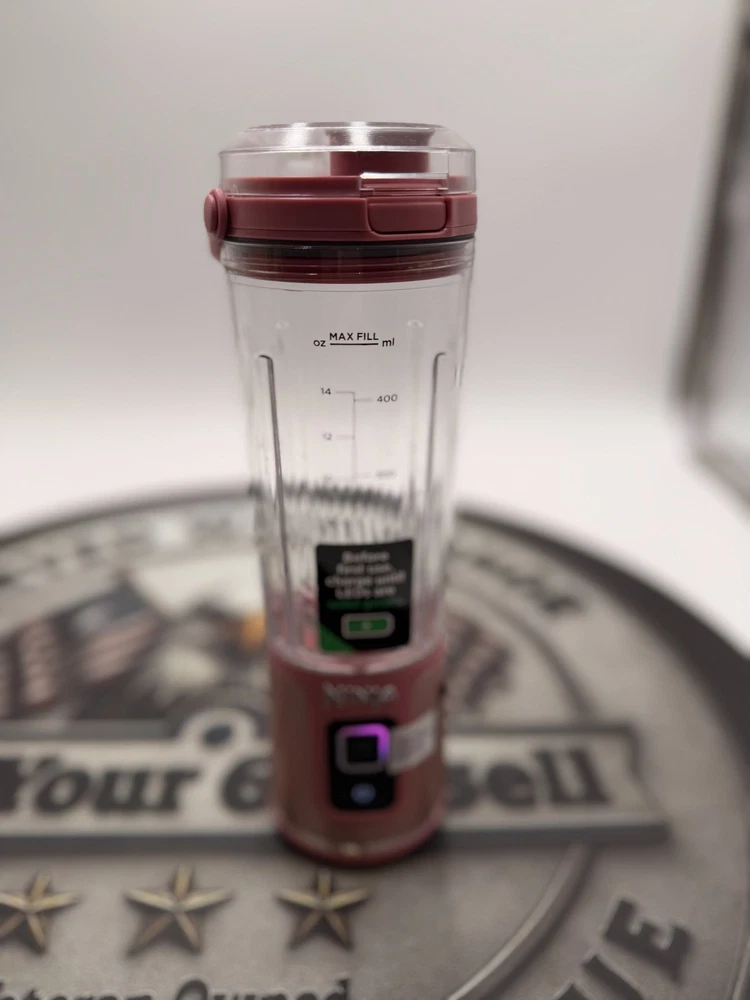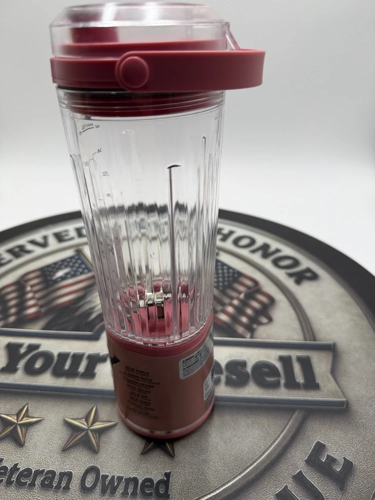 0091 does not have the original box. The Ninja Blast 18 oz Portable Blender with Leak Proof Lid is a compact and convenient smoothie blender in a stylish pink color. Powered by a 12V battery, it is easy to use and perfect for blending smoothies on the go. The plastic material and 18 oz capacity make it durable and efficient for blending your favorite drinks. Complete with a 16 oz blending vessel and an easy-open sip lid with a carrying handle, this portable blender is a practical addition to your kitchen or for outdoor use. Backed by a 1-year manufacturer warranty, the Ninja Blast provides quality and functionality in one sleek package.