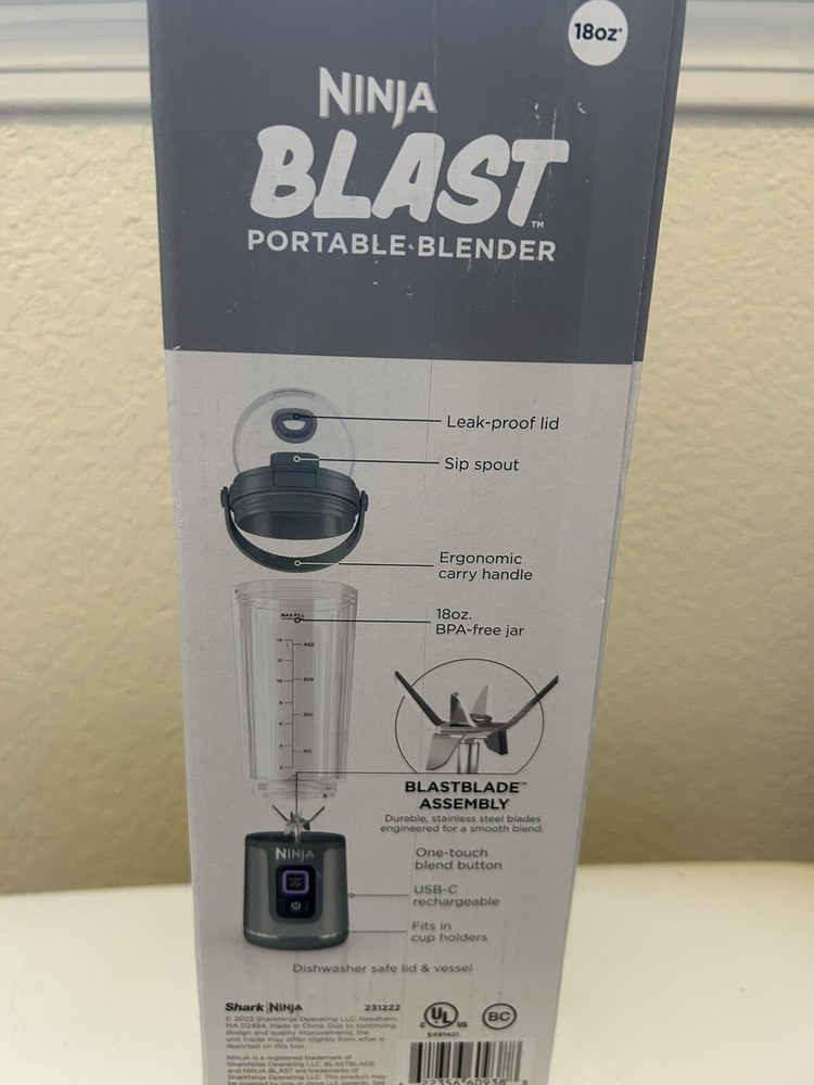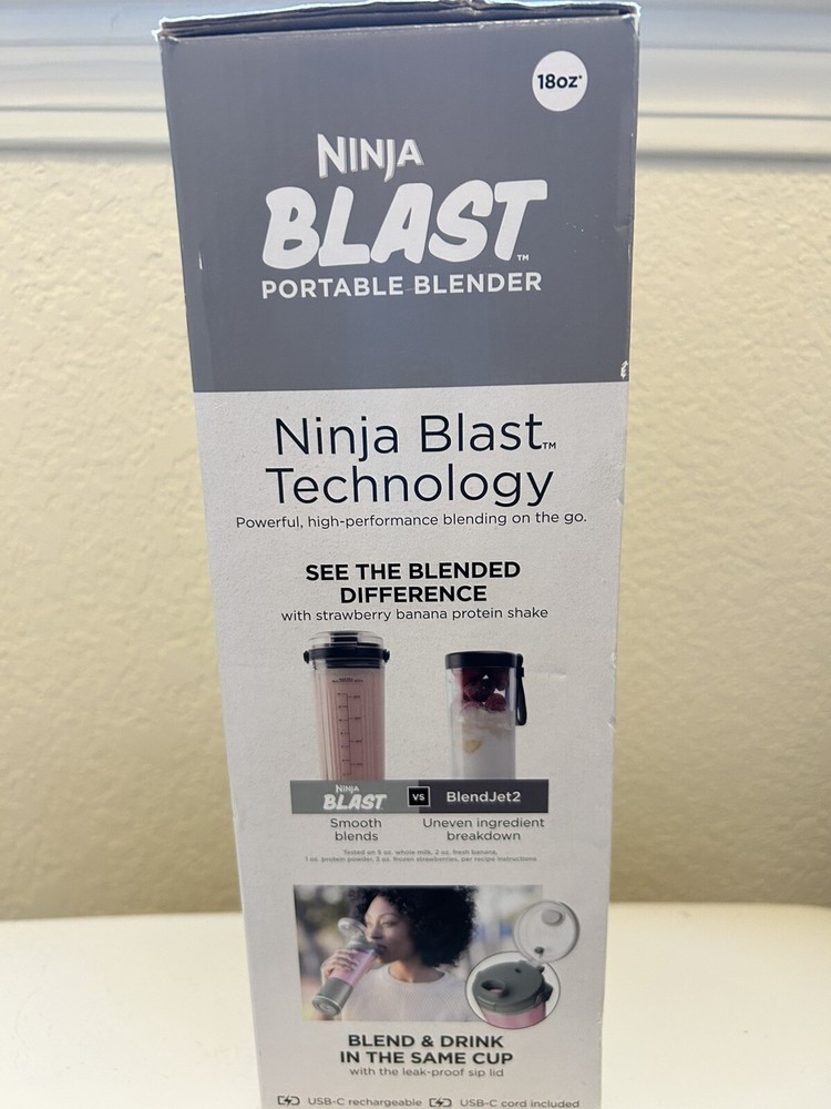 Ninja Blast 18oz Portable Blender BC151EM NEW IN BOX. Condition is New. Shipped with USPS Ground Advantage. Ninja blending power on the go. Blast through frozen fruit and ice and makes smoother smoothies ninja’s most compact and quietest blender.