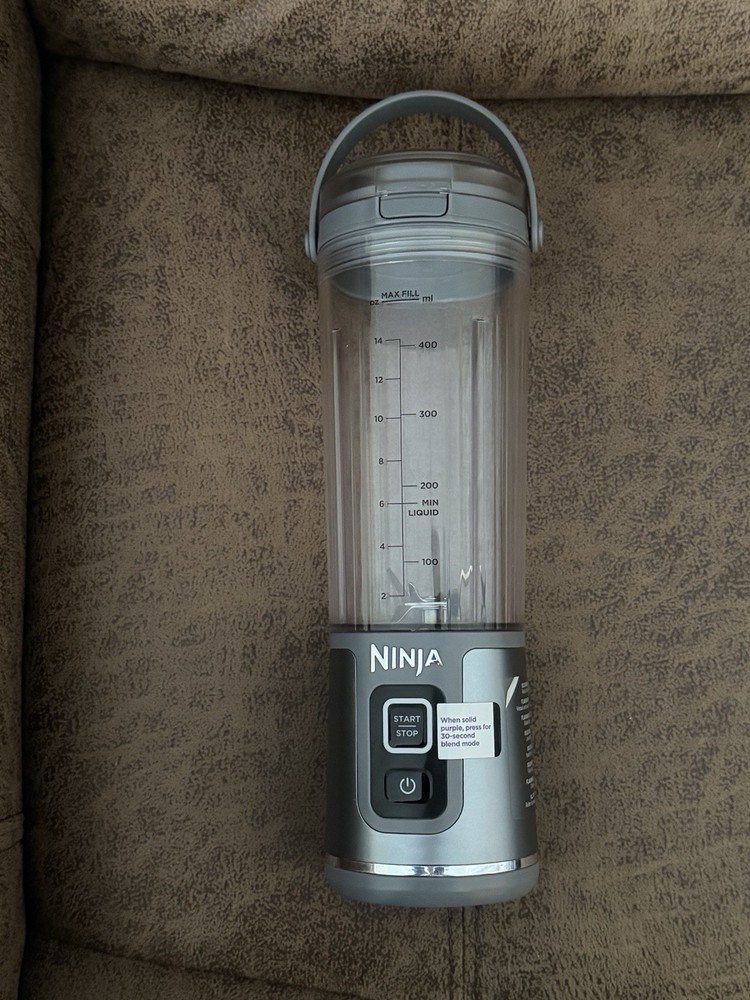 Pre-owned Ninja Blast Cordless Portable Blender (Model BC155SGY) in gray. Unit has been tested and powers on properly. A compatible charging cable and wall charger are included so it is ready to use. Includes: • Blender base • Blade assembly • Bottle with flip lid • Generic charging cable + wall adapter Condition: Light cosmetic wear from normal handling. See photos for exact condition. Features: • Cordless rechargeable design • One-touch blending • Portable travel bottle • Compact and lightweight Ships securely packed.
