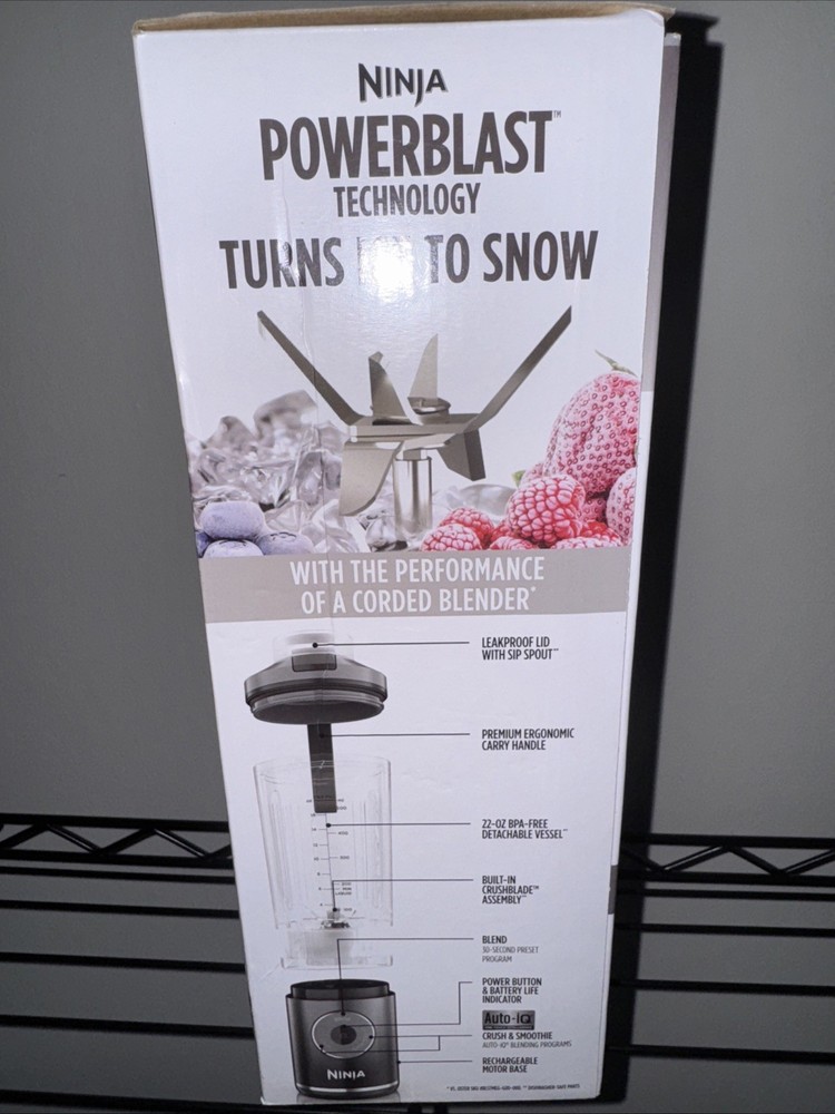 The Ninja Blast Max Cordless Blender in Cool Gray is a powerful personal blender with a 22oz capacity, perfect for blending smoothies and frozen drinks on-the-go. Operated by batteries, this sleek gray blender by Ninja is convenient for everyday use. The compact design includes a 1-year manufacturer warranty, making it a reliable addition to your kitchen or workspace. With its easy-to-use components, this blender is a versatile appliance for achieving your favorite healthy beverages effortlessly.