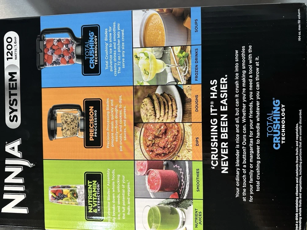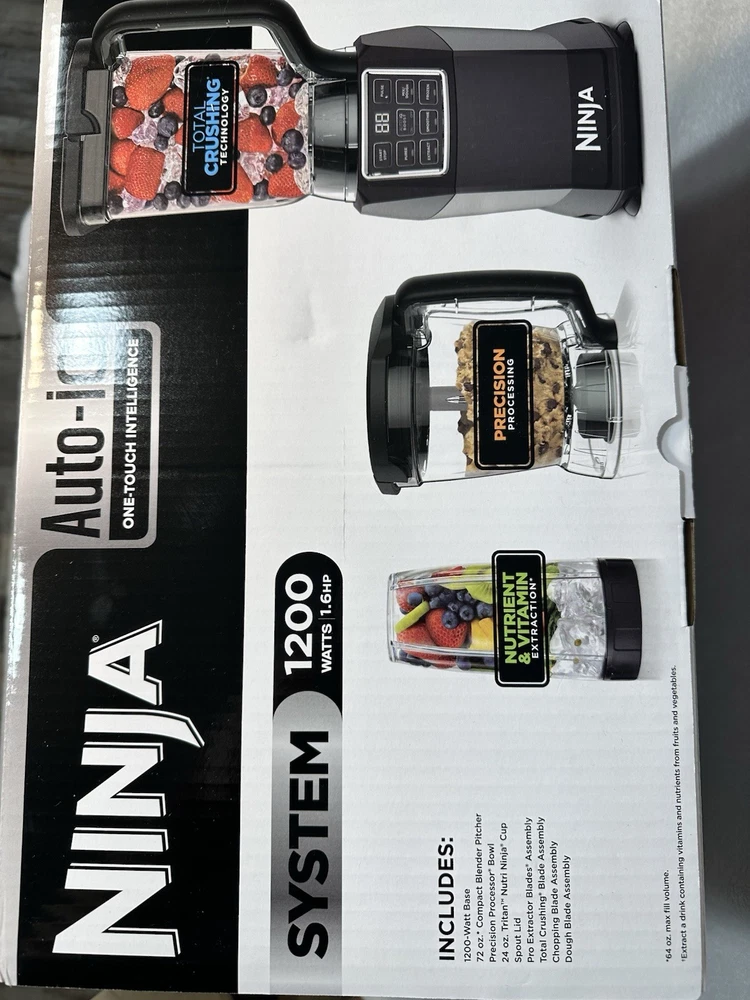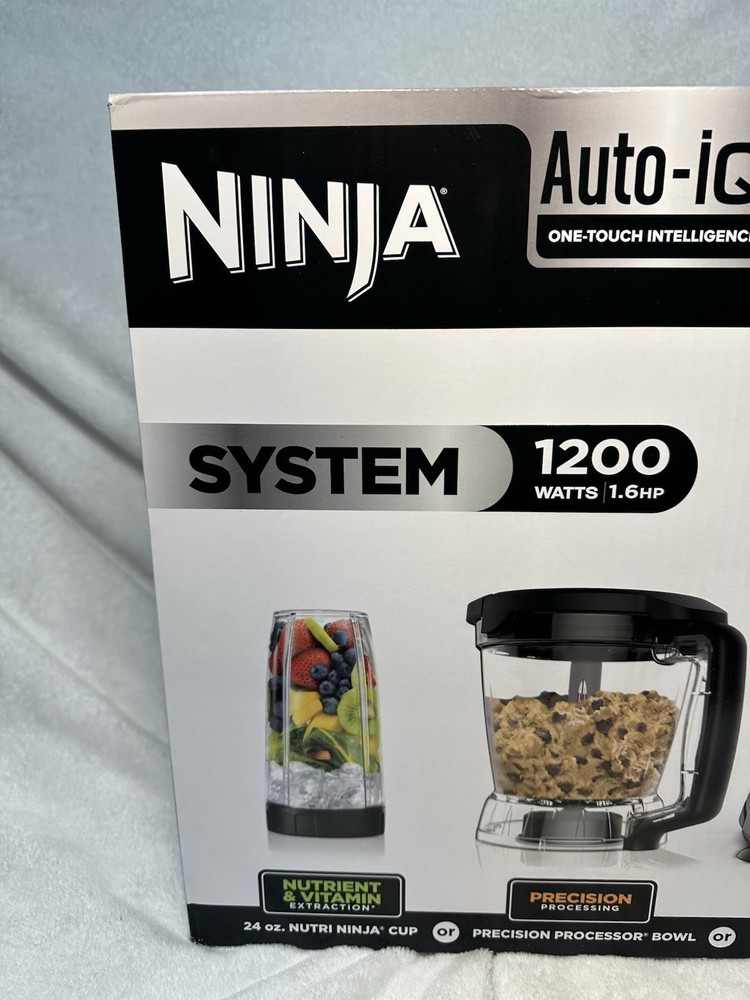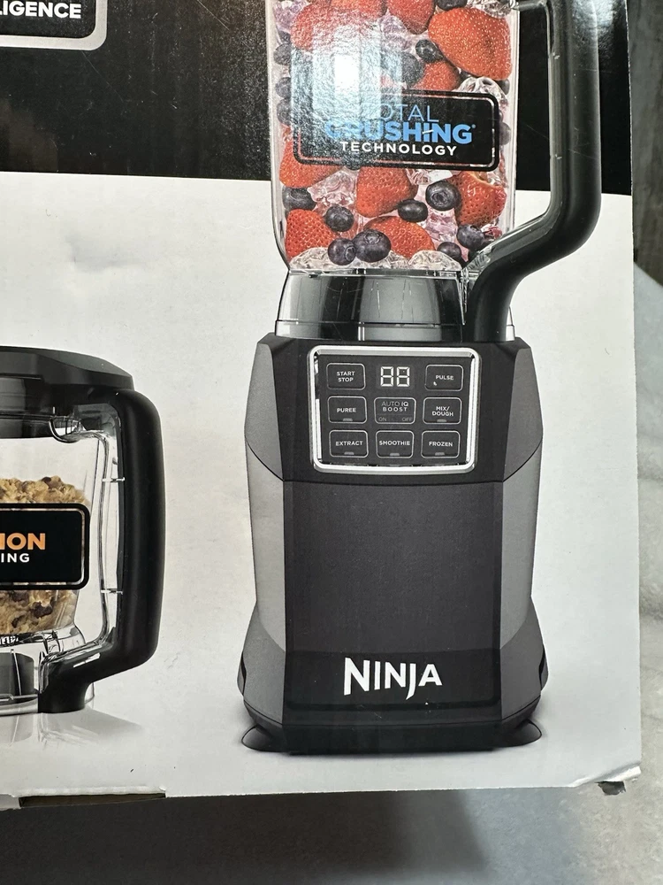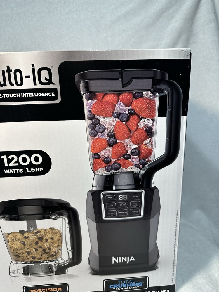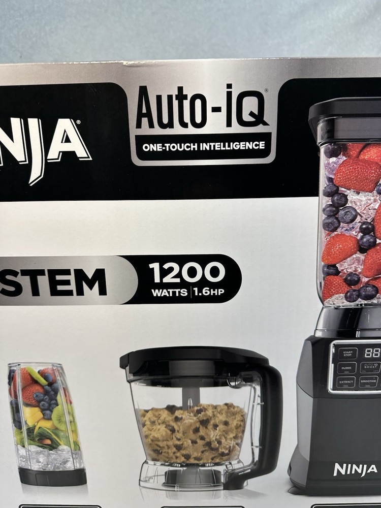 The Ninja Kitchen System with Auto IQ Boost and 7-Speed Blender is a versatile electric blender designed for various kitchen uses, including blending soups, smoothies, sauces, and more. With a 72 oz capacity and 1200 W power, this black ABS plastic appliance features a 360° swivel base for easy handling and a dishwasher-safe design for convenience. The 7-speed blender includes 5 blades for efficient blending and comes with a display for easy monitoring. Made by Ninja, this electric blender is a reliable choice for your kitchen needs.