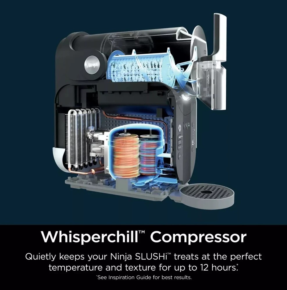 Color:Artic Blue and GrayPower Source:ElectricNumber of Items:1Item Height:16.28 inItem Depth:16.43 inNumber of Speeds:3Model:SlushiVoltage:120 VManufacturer Warranty:1 YearType:Slushi MachineItem Weight:23.37 lbsItem Width:6.52 inFeatures:ProgrammingNumber of Settings/Programs:3Country/Region of Manufacture:ChinaAppliance Uses:Frozen DrinkPower:200 WCapacity:72 ozBrand:Ninja