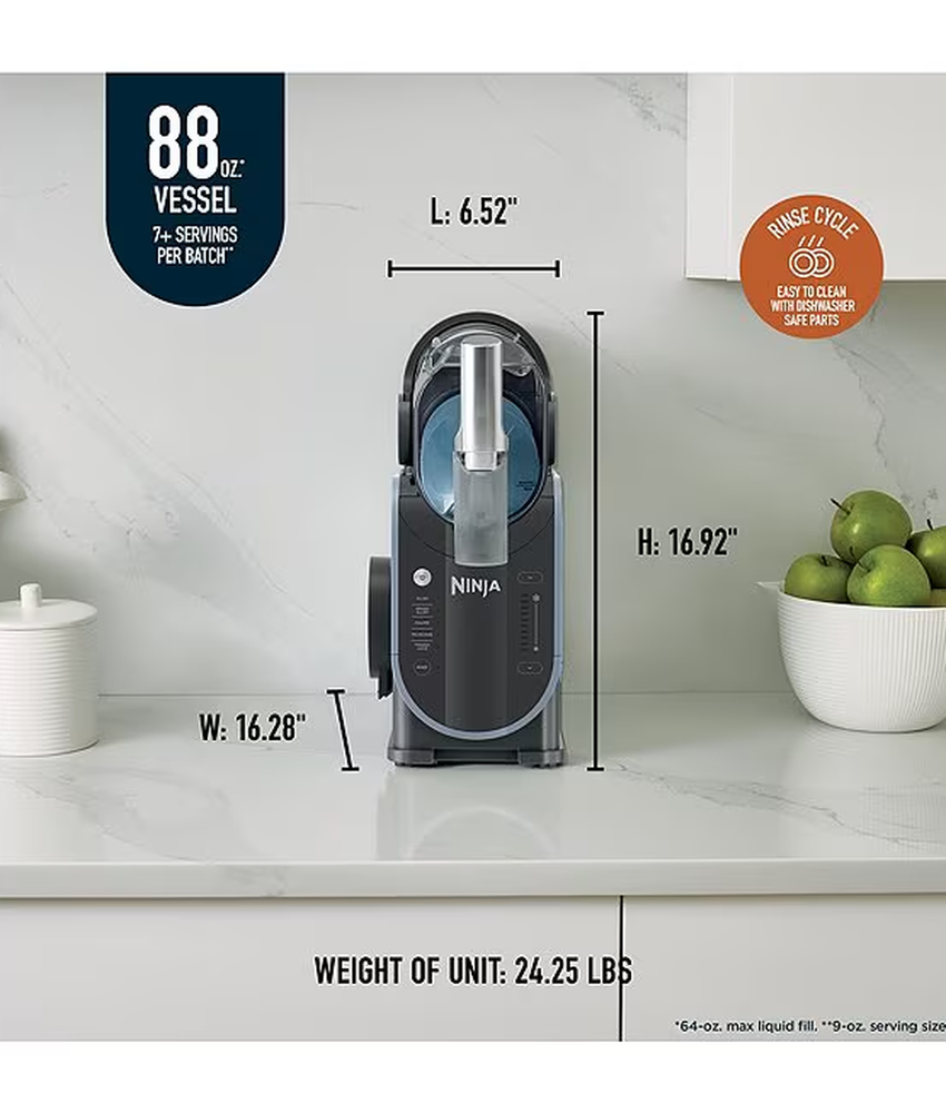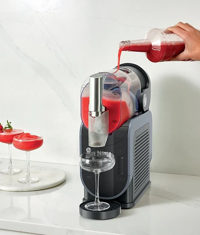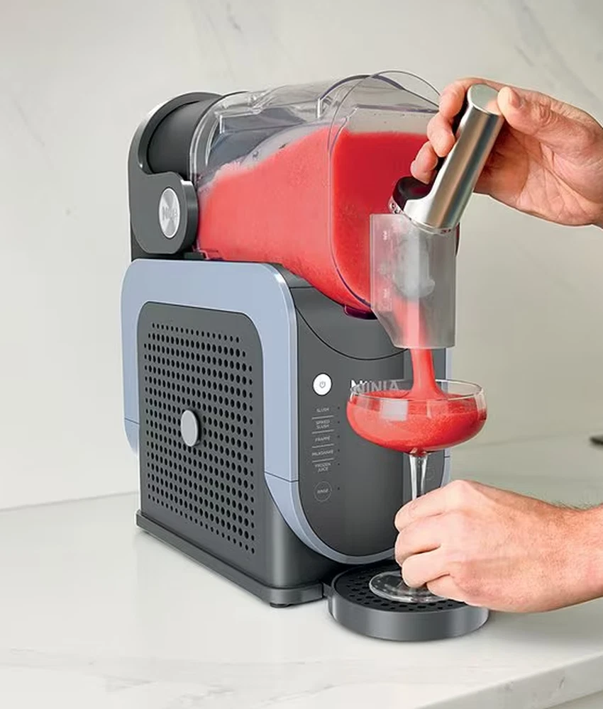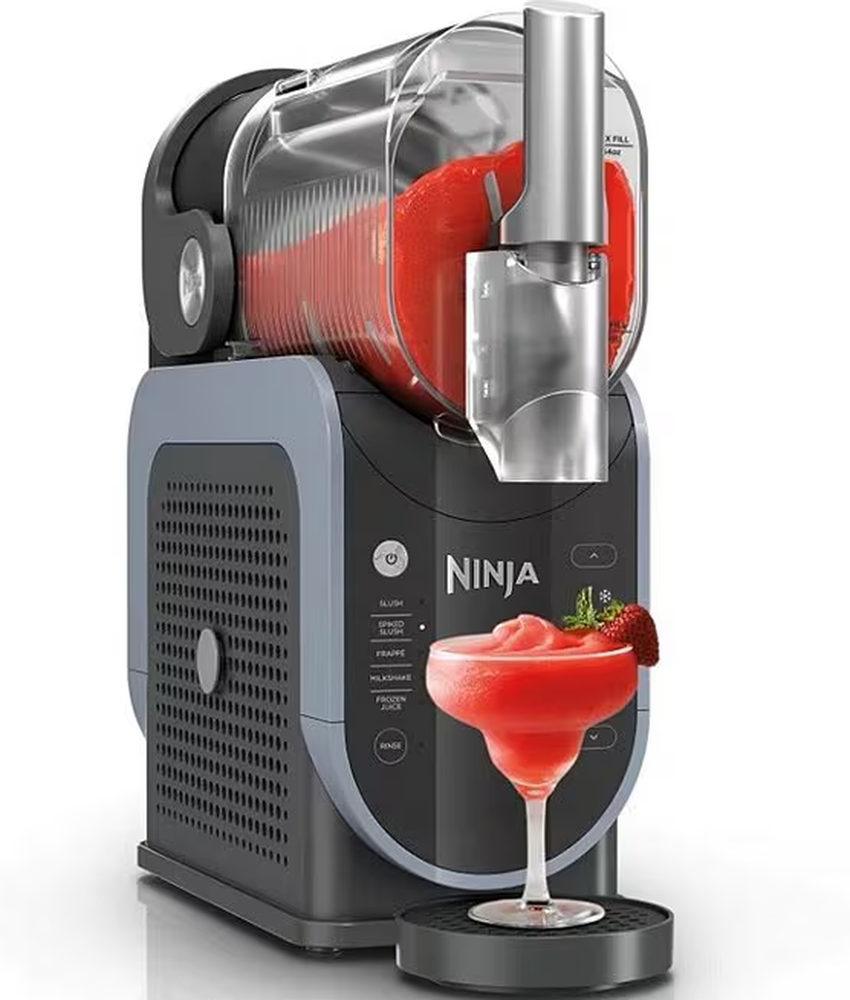 Item #20593275 From Ninja, the SLUSHi™ 88 oz. Professional Frozen Drink Maker features: Enjoy frozen drinks and slushies at home with the Ninja SLUSHI™, a high-performance slush machine that requires no ice! Featuring exclusive RapidChill Technology, it freezes liquids evenly for smooth, flavorful results every time. With five preset settings, you can customize the thickness and texture of your drink, from light and sippable to thick and spoon-worthy. The large 88-oz. capacity makes 7+ servings per batch, perfect for entertaining, while its 12-hour temperature retention keeps drinks icy cold. Cleanup is effortless with dishwasher-safe parts and a built-in rinse cycle. Elevate your refreshment game with the ultimate frozen drink maker! No ice needed: rapidchill technology freezes liquid evenly for perfect icy treats Superior frozen drink experience: turn liquids into smooth, flavorful frozen drinks 5 preset settings: automated programs give you tailored temperature settings Temperature control: customize whether the output is thicker or thinner than preset Hassle-free cleanup: easy to clean with dishwasher-safe parts and rinse cycle Hack sugar-free recipes: add recommended sugar substitutes to ensure perfect slushing Approx. 16.3" L x 6.54" W x 16.93" H Approx. 29.74 lbs What's in the box: 200w motor base with rapidchill technology 88 oz. vessel (64 oz. max fill) with comfort handle and anti-drip spout Condensation catch Auger 2-part drip tray Removable spout shroud Inspiration guide with 10 recipes Imported. DMS: 0725 196 FS301 Ninja’s inspiring kitchen appliances make it quick and easy to prepare delicious, healthy food and drinks at home – whether you’re cooking for yourself, entertaining friends or feeding a hungry family. Ninja gives you more, with multiple functions in every appliance and automatic programs that do the hard work for you. From powerful Ninja blenders and precise food processors to versatile cooking appliances, including Ninja Foodi multi-cookers, grills, air fryers and more. Every product is engineered in-house and designed for speed, power, ease and incredible results. Always innovating, our engineers continue to create new technologies that combat your food-prep frustrations.