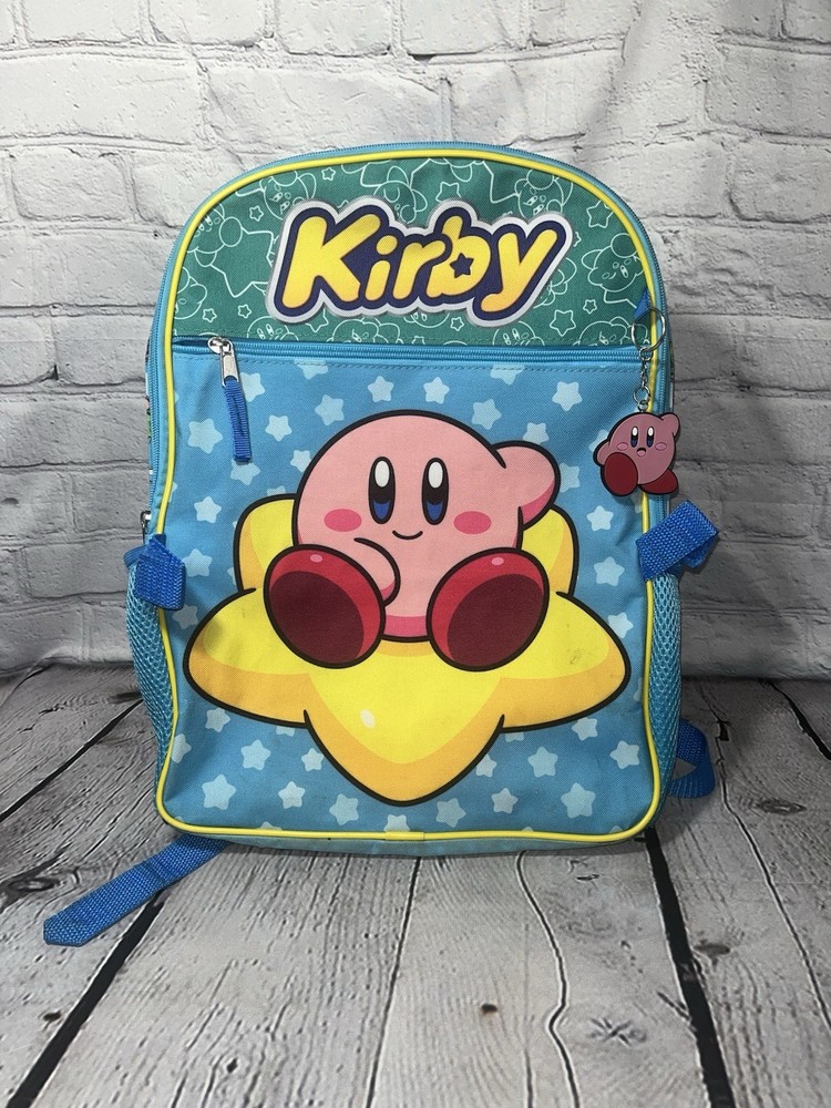 The Nintendo Kirby Kids' Backpack Set includes a colorful backpack with a zipper closure, shoulder strap handle style, and key chain set. Made of durable polyester material, this large-sized backpack features fun accents with the beloved Kirby character. Perfect for travel occasions, this unisex kids' backpack from the Kirby brand adds a playful touch to any outfit. Made in China, this set is sure to make a statement with its vibrant multicolor design. Smoke free Pet free gently used