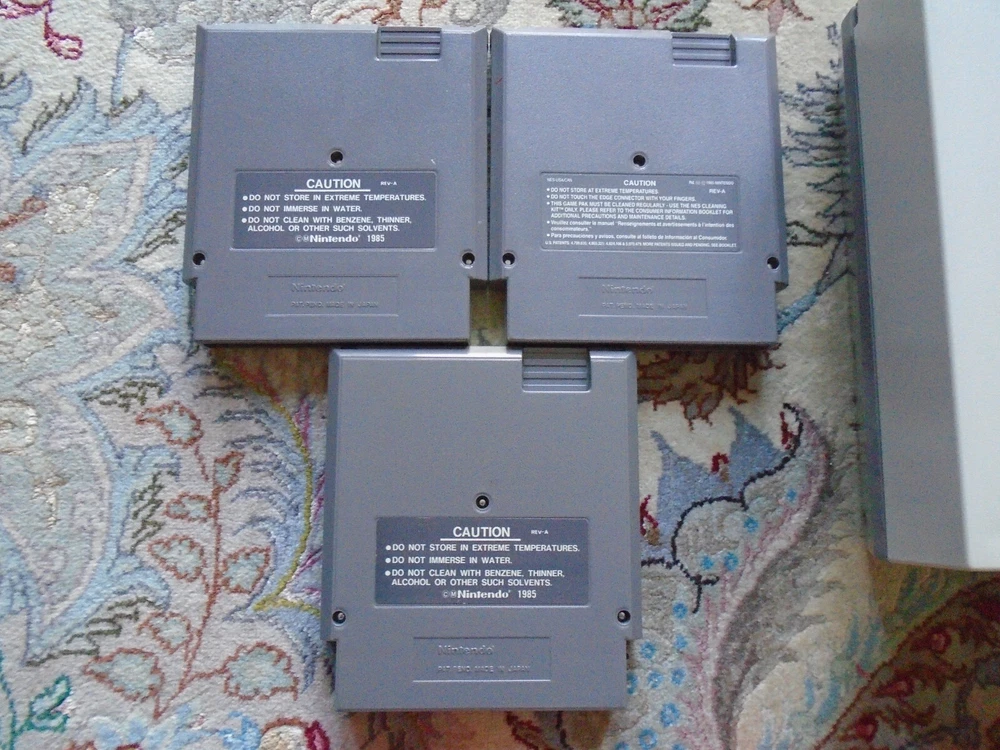Video game bundle includes: Nintendo Entertainment System console (model NES-001 - original "Toaster" style) 2 OEM controllers OEM NES Advantage arcade joystick controller OEM Zapper light gun controller Necessary cables (OEM AC Adapter power cable and third-party composite audio/video cables) 3 games included: Super Mario Bros. / Duck Hunt Super Mario Bros. 2 Super Mario Bros. 3 Functionality and Cosmetic Condition: Everything is fully tested and working perfectly! The items are in good to excellent used condition, with some signs of wear and a couple small chips off the console's casing. The console has some yellowing occurring on the casing. PLEASE NOTE: The Zapper light gun controller worked, but only on a CRT (Cathode-Ray Tube) TV, and will not work on newer TVs (flat panel/rear-projection). The Zappers were only designed to work on CRT TVs. The items come from a smoke-free, pet-free home. The photos are of the actual items being sold. We only accept returns if the items were not described correctly. Thank you for viewing our auction and good luck bidding!