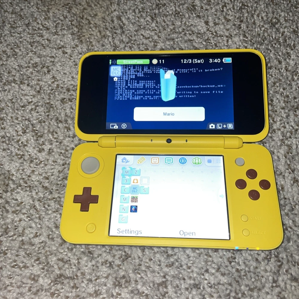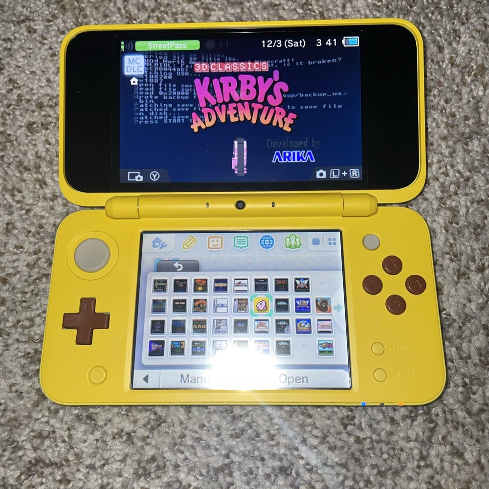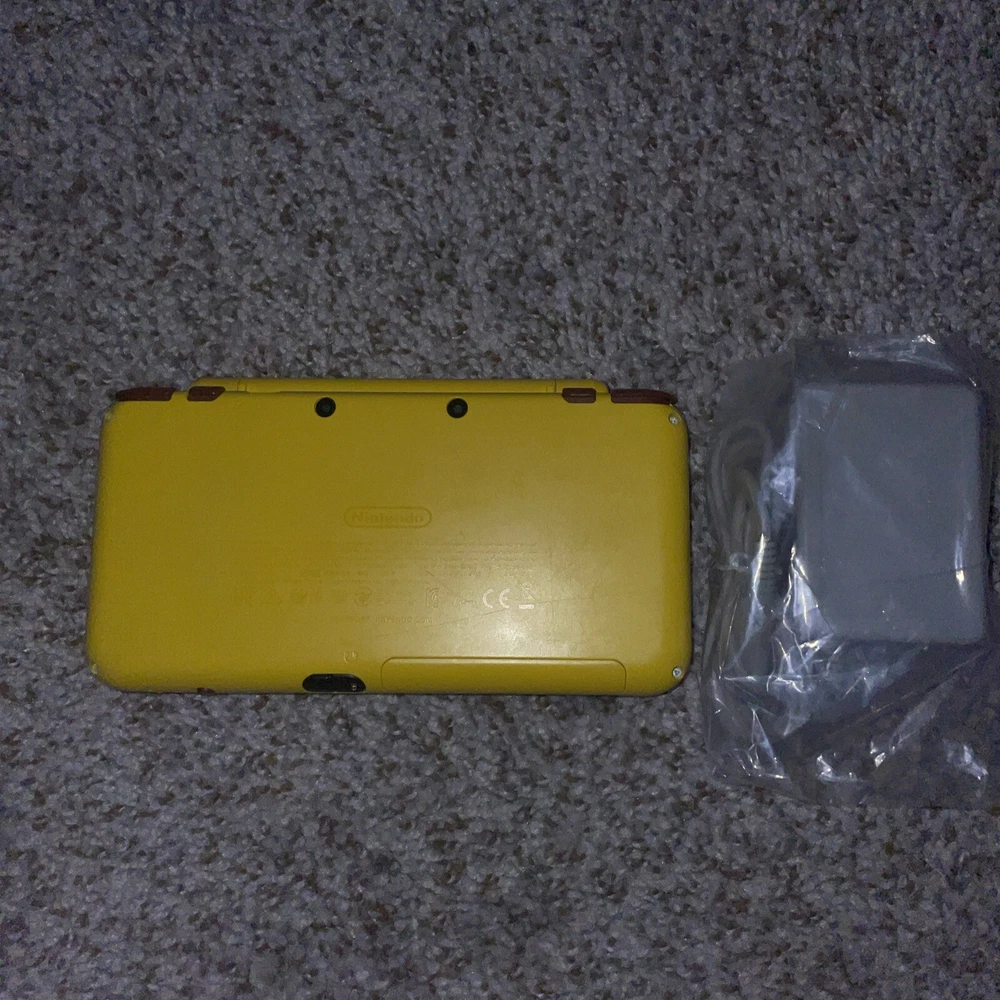 The product is a Nintendo 2DS XL handheld system in Pikachu Edition Yellow color. It has 128 GB storage capacity and comes with 100+ games pre-installed on a 128GB SD card. The system features Wi-Fi capability, internet browsing, and includes a stylus. It is suitable for use in the NTSC-U/C region (US/Canada) and is branded as Nintendo.