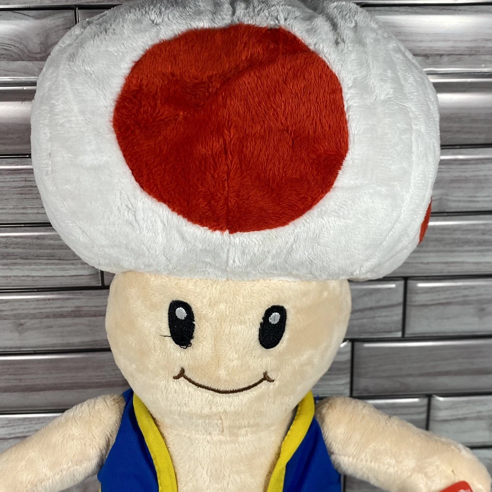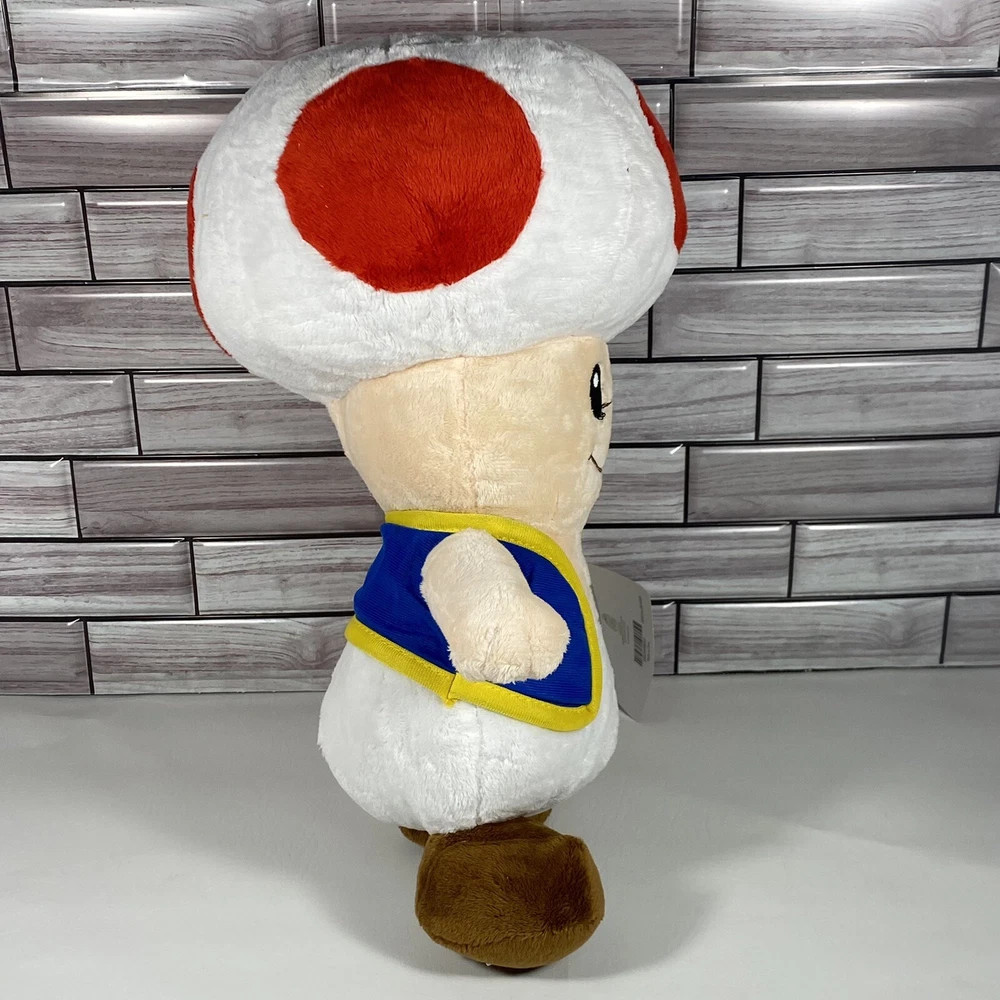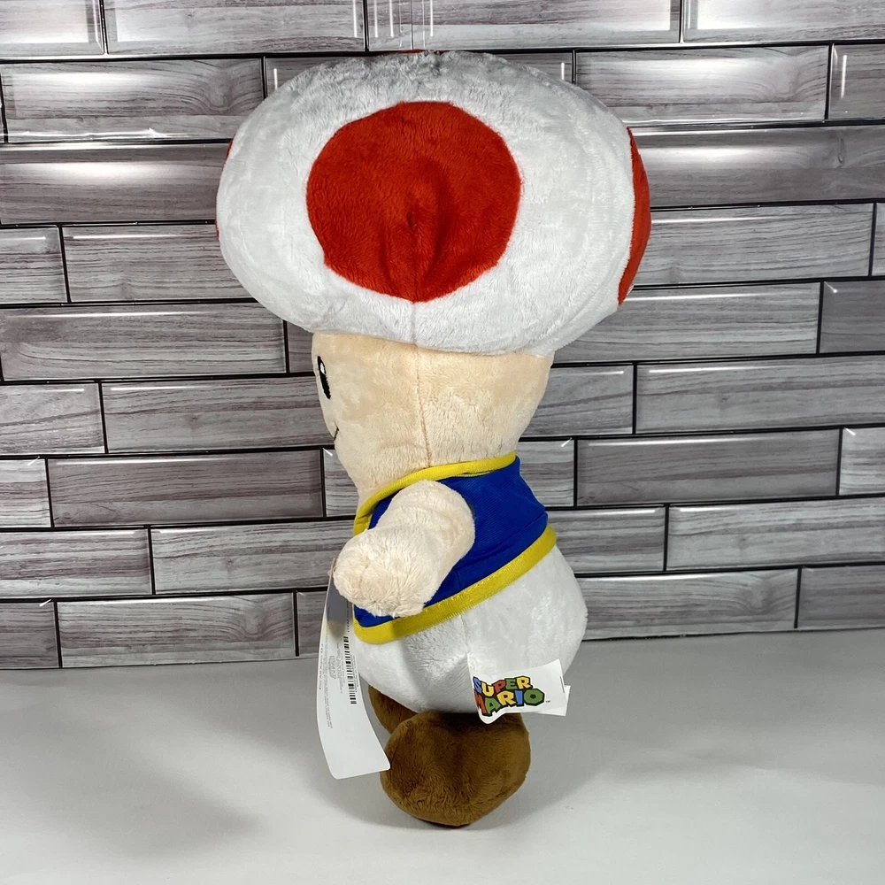 Bring home the fun and excitement of Nintendo Super Mario Bros with this Toad plush stuffed animal. Measuring 20 inches tall, this plush toy is perfect for cuddling and displaying. Made of high-quality plush material, it is soft and comfortable to the touch. This officially licensed action figure is a must-have for any Super Mario Bros fan. Featuring Toad, one of the beloved characters from the franchise, this plush toy is a great addition to any collection. Its vibrant colors and intricate details make it a perfect gift for kids and adults alike.
