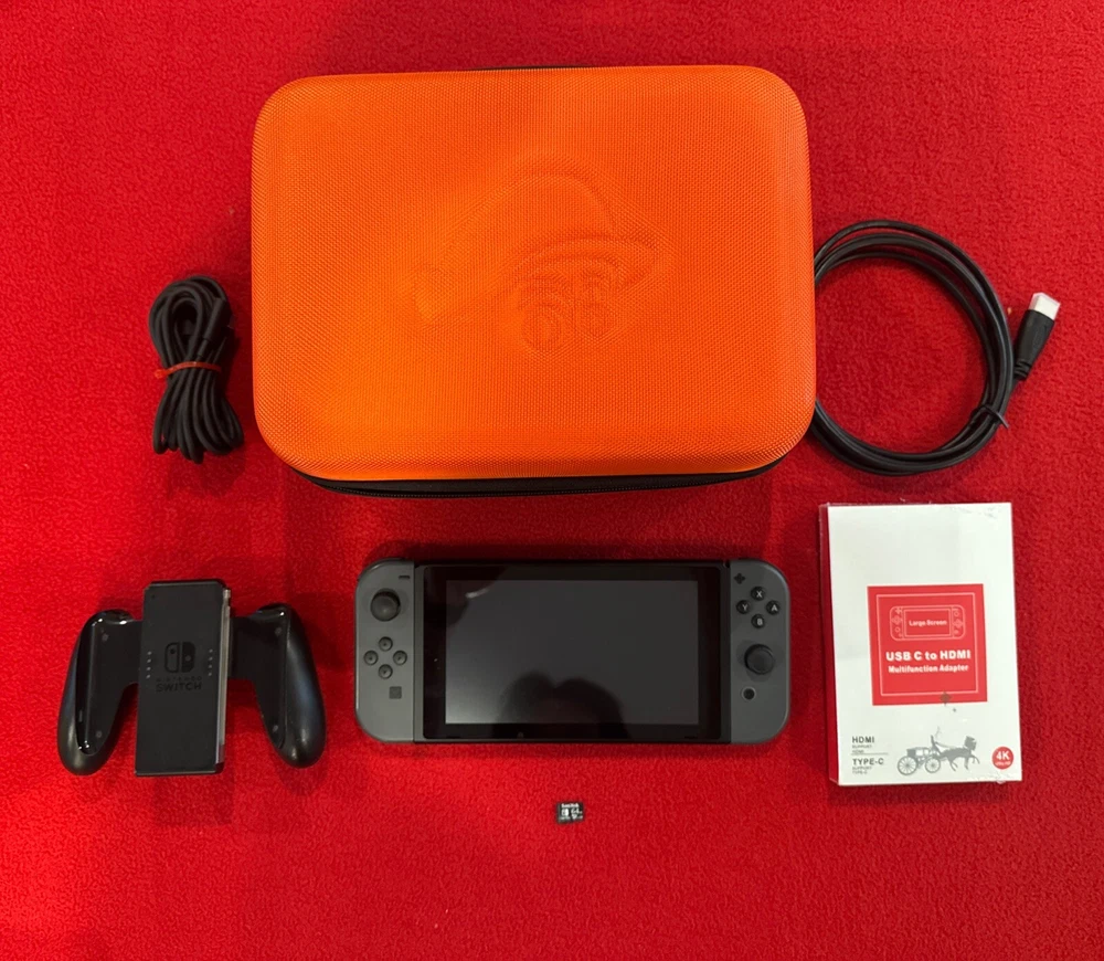 Nintendo Switch 32GB Console System Bundle Joy-Cons | Authentic US version. The travel DOCK IS included. get started gaming on the Nintendo Switch platform today! Here is what you get: 1. Nintendo Switch Gray 32GB V2 console with double the battery life Model: HAC-001 (-01) Serial: as seen in the pics) The console has been fully tested and works as intended. The console is in USED condition with lite scratches to the screen and console. 2. Nintendo Switch L/R Gray / Grey Joy-Cons: minimal to no noticeable drift was detected during testing / both charge / both work together and alone. used condition with wear. 3. Nintendo Switch AC Adapter/Charger: 3p charger cord 4. HDMI 5. Switch dock travel size New condition 6. Nintendo switch Mario case used condition 7. Nintendo switch black grip controller 8. Sandisk 64GB SD card inserted into the memory card slot and ready to go E-games/downloads/ DLC games are NOT guaranteed at purchase. IF NOT LISTED ABOVE IT IS NOT INCLUDED *Questions? Please ask PRIOR to purchase* We reply to messages during our work hours 9-5 M-F. We are closed on the weekends and during holidays. Questions received during non working hours will be answered during the next business day. FAQ #1 **The price is FIRM, thanks for understanding** FAQ #2***Returns accepted within 30 days, deductions made for missing, damage, and misuse of the item(s)*** Shipping: USPS/FEDEX/UPS Ground - a signature may be required upon delivery (no freight forwarders) If I cannot verify your address the order will be cancelled would make a wonderful holiday gift 🎁
