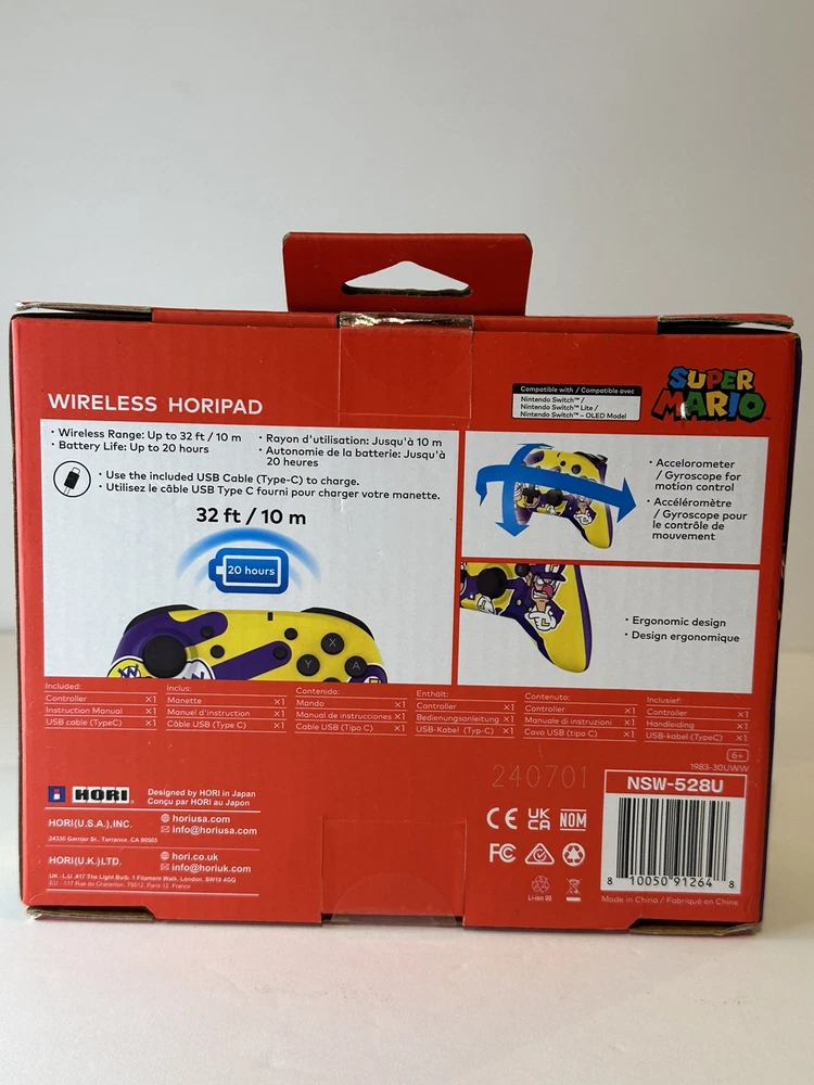 Get your hands on this amazing Nintendo Switch Wireless Horipad Super Mario controller! This multicolor controller is perfect for playing your favorite games on your Nintendo Switch console. It is compatible with all Nintendo Switch games and accessories, and has a wireless range of 5-10 meters. The Horipad is made of high-quality plastic material and is ergonomically designed for comfortable gameplay. This controller features a variety of aspects such as a maximum of 1 player, 1 fan, and 1 unit quantity. The Horipad is a great addition to your gaming setup and is sure to enhance your gaming experience.