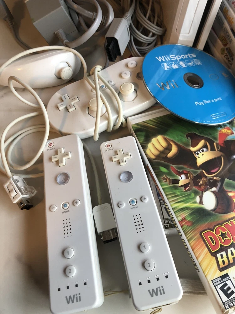 Nintendo Wii Console Super Mario Bros Sports Donkey Kong RVL-001 Games Bundle