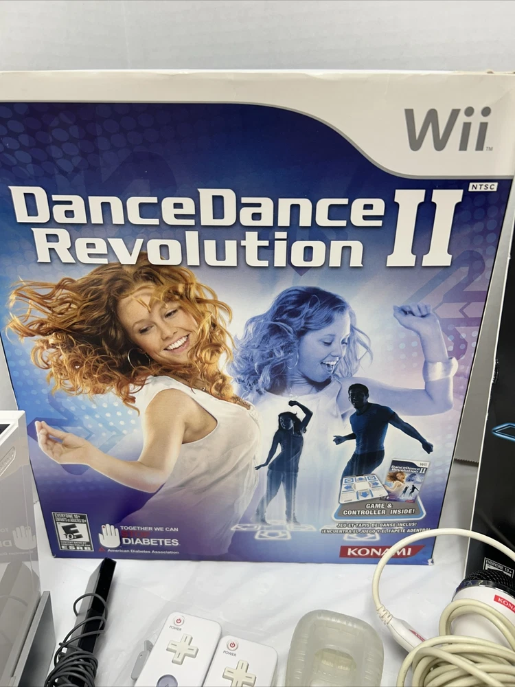 Experience the ultimate gaming console with the Nintendo Wii RVL-001. This home console boasts a storage capacity of 512 MB and is compatible with Blu-Ray. It also features Wi-Fi capability and internet browsing for an immersive gaming experience. Connect to your TV using the included component RCA, HDMI, and USB-A cables. The Nintendo Wii has a resolution of 480p and is designed for the NTSC-U/C (US/Canada) region code. This console is in white and has a weight of 4.25 lbs. Get ready for hours of fun with the Nintendo Wii RVL-001! Comes with 2 remotes 2 nunchucks 1 motion plus 11 games one GameCube style remote. Microphone and 2 in box dance pads