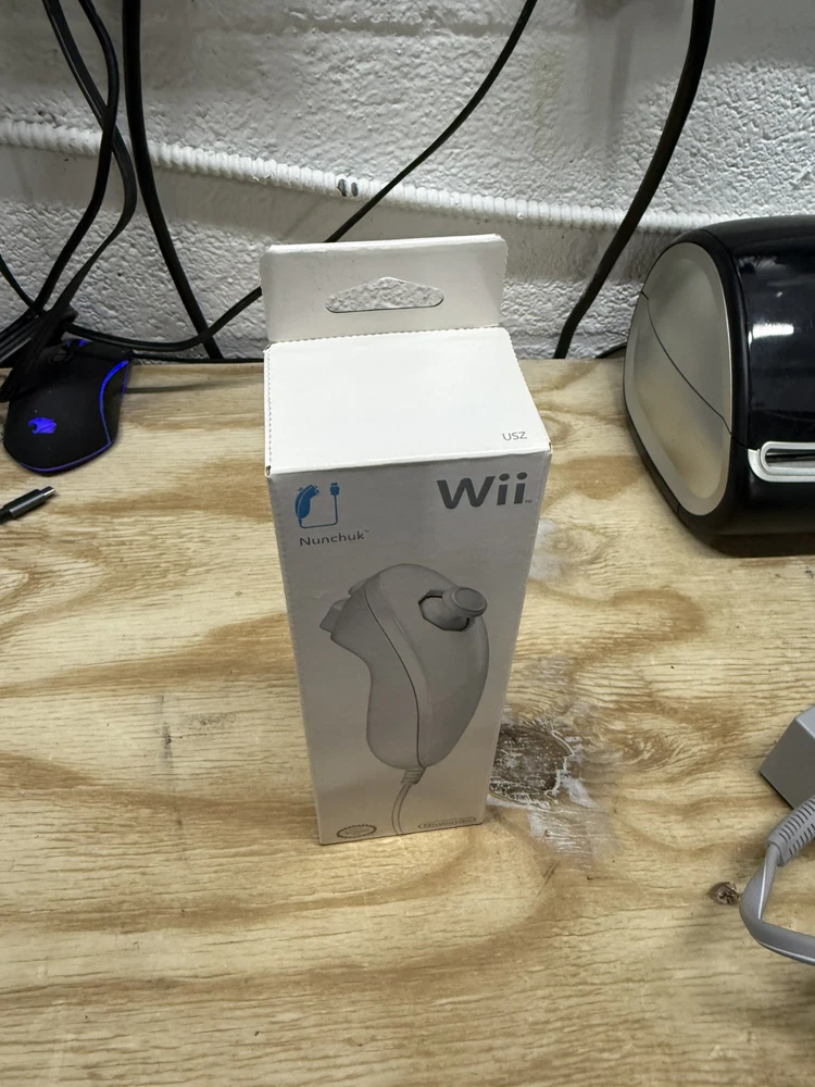 The Nintendo Wii White Nunchuck Controller is an OEM original accessory designed specifically for the Nintendo Wii gaming system. This new, sealed controller attachment is wired for connectivity and is compatible with both the Nintendo Wii and Wii U consoles. The white color and original brand highlight its authenticity and quality, making it a reliable addition to enhance gameplay experiences for a variety of compatible games on the Nintendo Wii platform. SEALED BRAND NEW WII NUNCHUCK. NEVER OPENED. FAST SHIPPING.